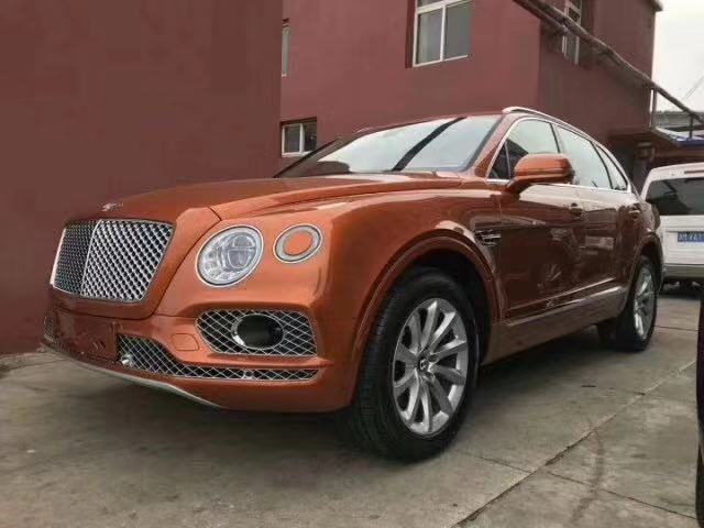 描述:18款宾利添越全新车 4.0 柴油 平行进口 香槟金色外观 棕米双色拼接内饰 港口现车 环保公开 全国上牌 配备百年灵时钟 户准价优
