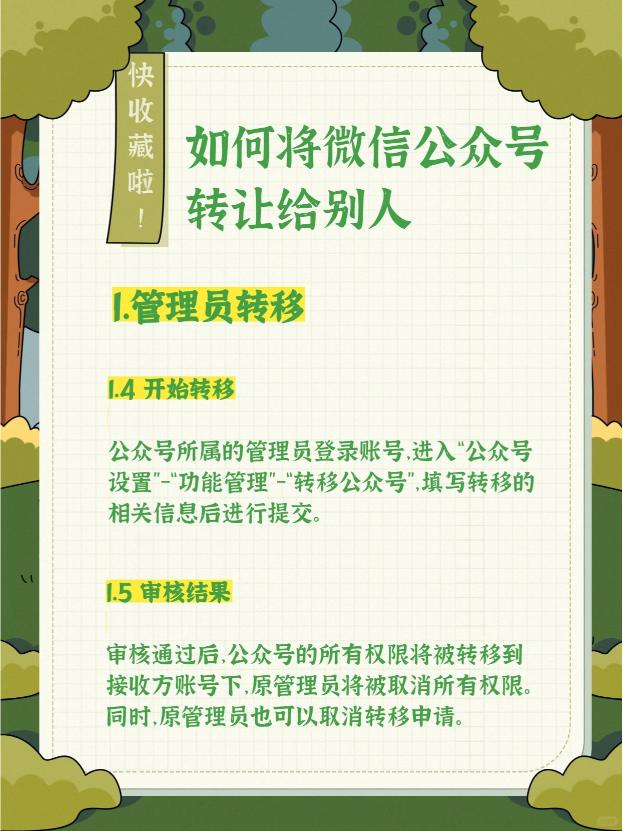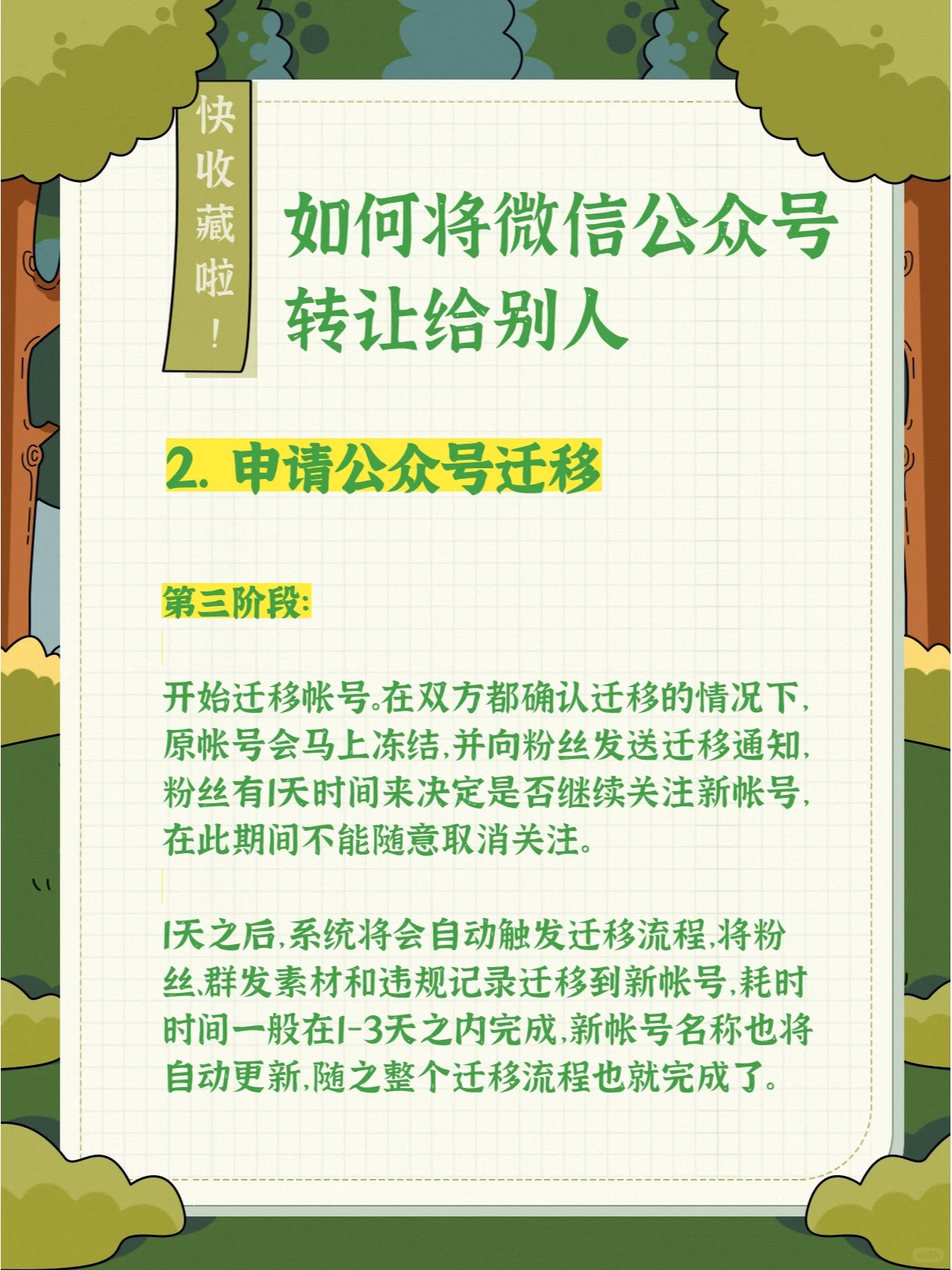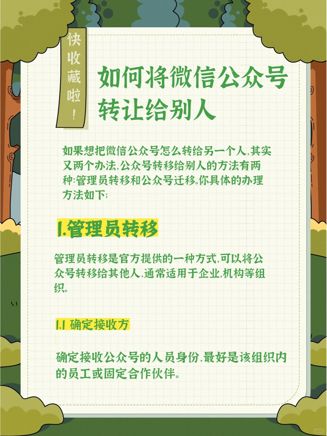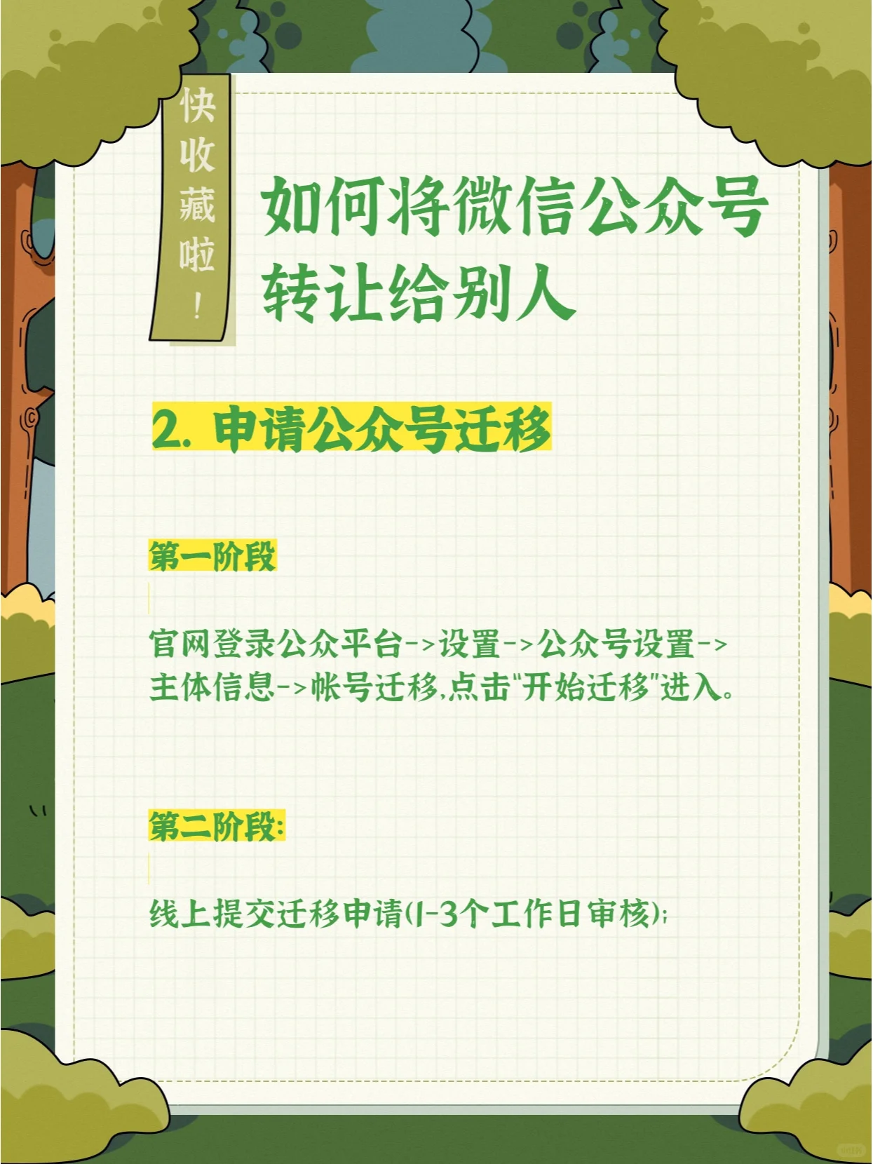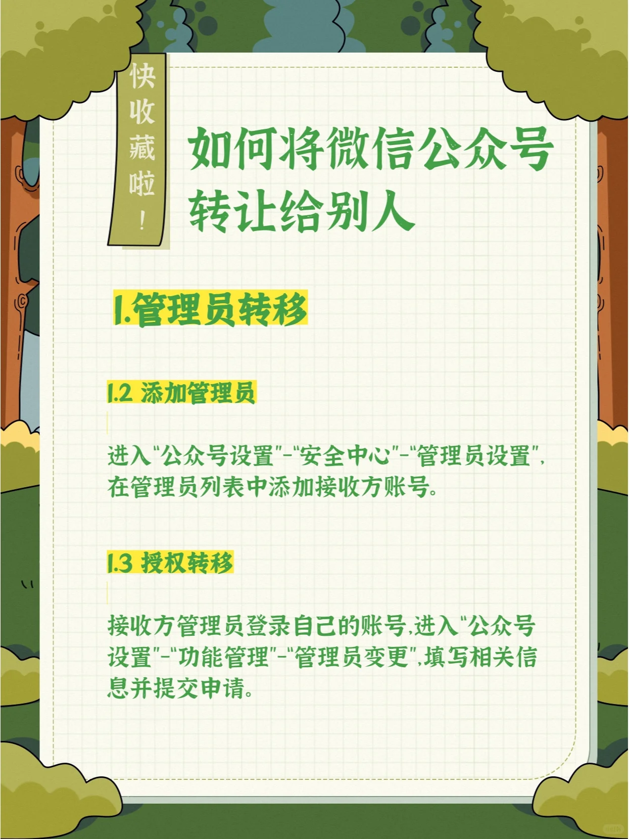 如果你想把你的微信公众号转移给另一个人,有两种方法。有两种方式可以将您的公众号转移给他人:管理员转移和公众号转移。您的具体处理方法如下:; 1.管理员调动 管理员转移是将公众号转移给其他人的一种官方方式,通常适用于企业、机构和其他组织。 步骤如下: 1.1确定收件人 确定接收公众号的人的身份,最好是组织中的员工或固定合作伙伴。 1.2添加管理员 输入“官方账号设置”-“安全中心”-“管理员设置”,在管理员列表中添加接收者账号。 1.3授权转让 接收方管理员登录自己的账户,输入“公众号设置”-“功能管理”-“管理员变更”,填写相关信息并提交申请。 1.4启动转移 公众号管理员登录账号,输入“公众号设置”-“功能管理”-“转账公众号”,填写转账信息并提交。 1.5审核结果 审批后,公众号的所有权限将转移到接收者的帐户,并取消原管理员的所有权限。同时,原管理员也可以取消转账请求。 2.申请公众号迁移 第一阶段登录公众平台->设置->公众号设置->主题信息->官网账号迁移,点击“开始迁移”即可进入。 第二阶段:在线提交迁移申请(1-3个工作日审核); 阶段3:开始迁移帐户。 如果双方确认迁移,原账号将立即被冻结,并向粉丝发送迁移通知。粉丝有一天的时间决定是否继续关注新账号,在此期间不能随意取消关注。一天后,系统将自动触发迁移过程,将粉丝、群帖材料和违规记录转移到新帐户。通常需要1-3天才能完成,新帐户名称也会自动更新。因此,整个迁移过程就完成了。