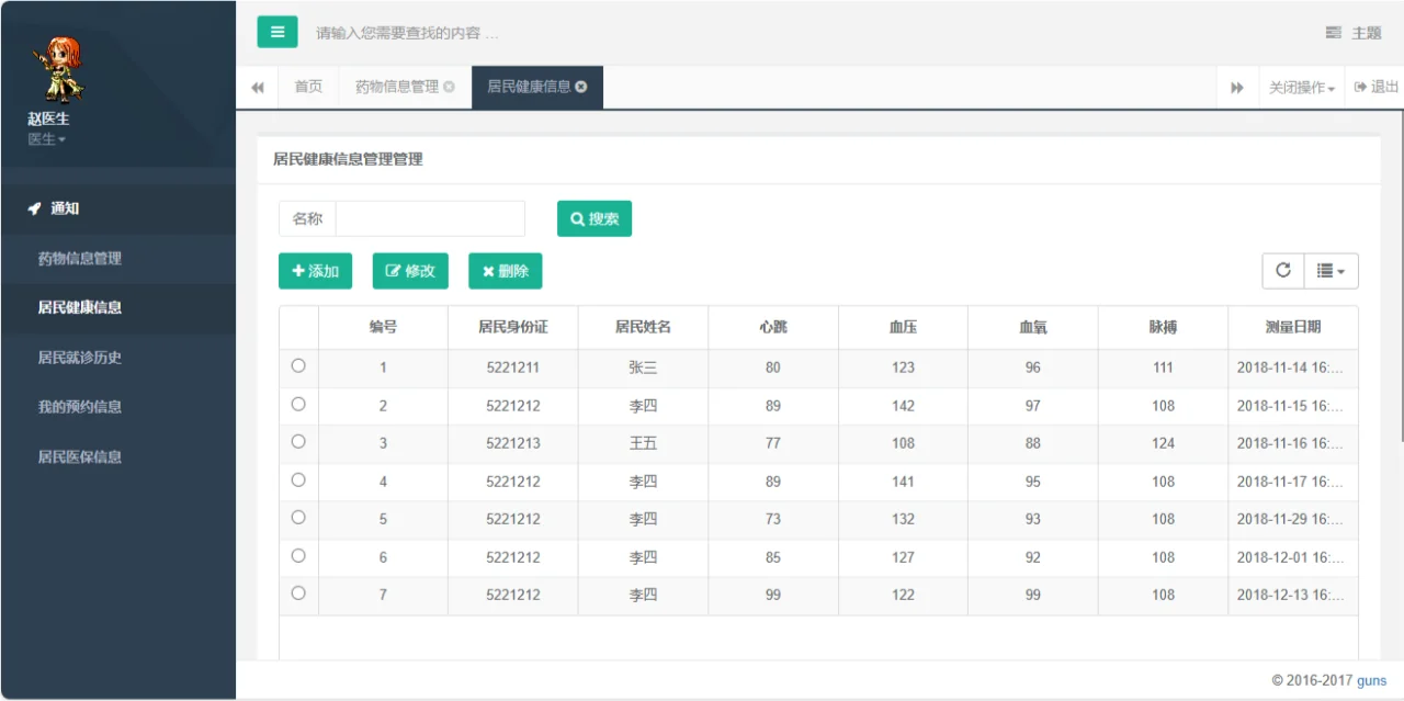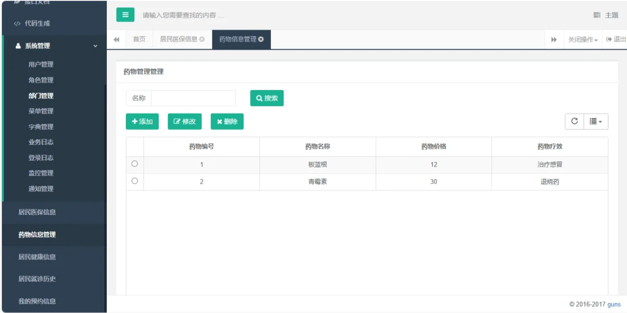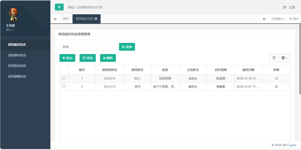 不知道毕业制入门的朋友们,不如来了解一下这个功能齐全、不复杂的社区养老综合服务平台吧?源代码质量有100%的保证,可以正常运行。如果您需要源代码,可以直接与我联系。 项目简介 前端HTML、jquery、后端Maven、SpringMVC、Spring、Mybatis、Shiro,角色分为管理员、医生和病人;一个集成了居民就诊、预约、居民医疗保险和居民健康信息等功能的系统。 功能介绍 管理员 -用户管理:用户信息的添加、删除、修改、查询 -角色管理:增加、删除、修改、查询角色信息,配置权限 -菜单管理:增加、删除、修改、查询菜单信息,显示树形结构 -居民医保信息:管理员可以查询所有用户的医保信息 -药品信息管理:新增、删除、修改、查询药品信息 -居民健康信息:管理员可以查询所有居民的健康信息,包括心跳、血压、血氧等 -住院病历:增加、删除、修改和查询医疗信息 医生 -居民医保信息:医生可以查询所有用户的医保信息 -药品信息管理:新增、删除、修改、查询药品信息 -居民健康信息:医生可以查看所有居民的健康信息,如心率、血压、血氧等 -住院病历:增加、删除、修改和查询医疗信息 #患者 -我的约会信息:添加、删除、修改和检查约会信息。预约时,有必要指定医生、时间和地点 -居民医保信息:医保信息列表查询 -居民健康信息:健康信息,包括心跳、血压、血氧等 -住院病历:增加、删除、修改和查询医疗信息