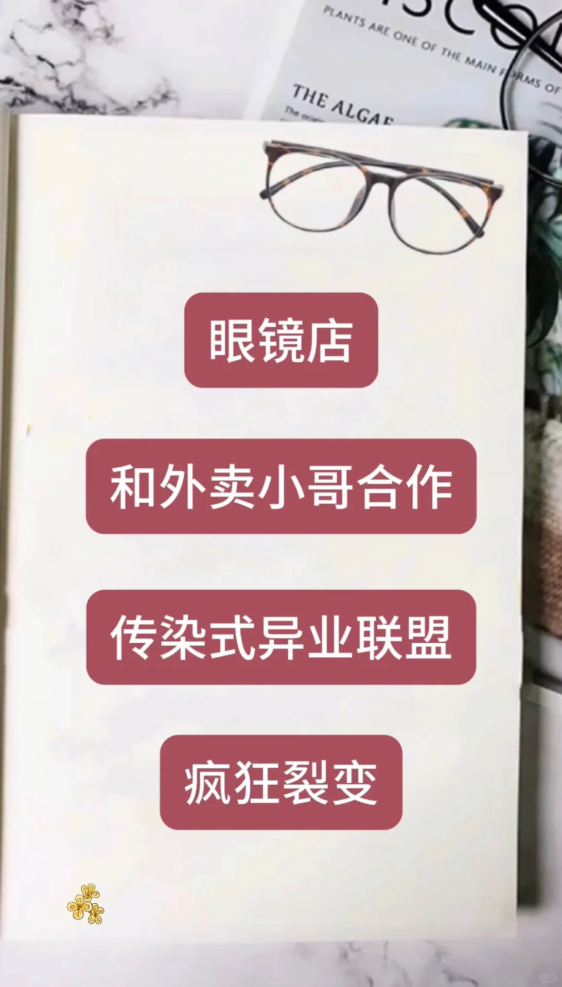 眼镜店老板,寒假期间,你必须组成一个跨行业联盟,让送货员成为你的销售员。会发生什么?每次送货给客户时,都会赠送一张会员卡。只要顾客持卡到店查询消费情况,外卖小哥也能收到相应的佣金。顾客越多,收入就越高。一份工作有两份薪水,送货员也会更积极主动。就这样把送货员变成你的销售员。