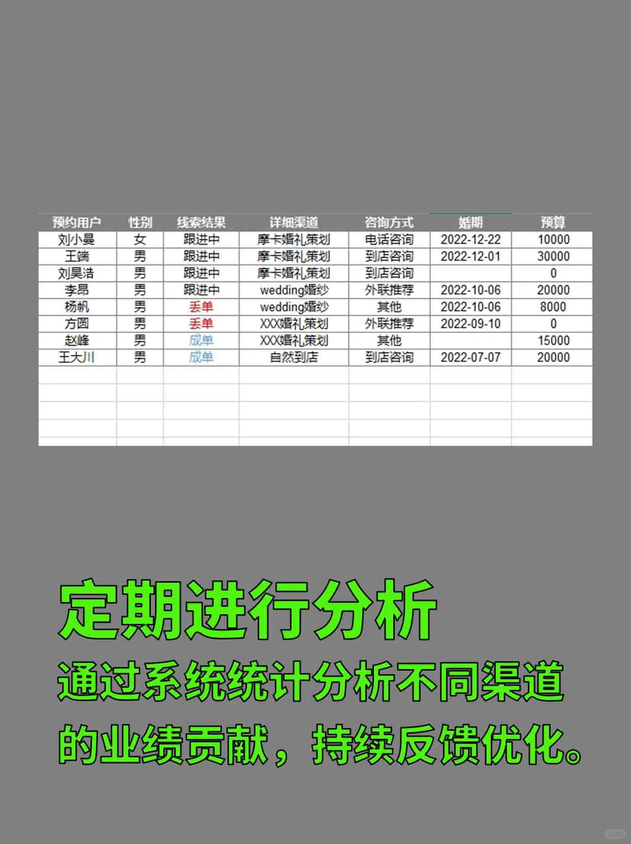 ? 对于定制西装,尤其是那些专注于婚礼客户群体的西装,跨行业合作渠道是客户资本的重要来源。 ?? 通常的合作渠道包括婚礼策划公司、婚纱店、酒店等。对于占婚礼客户业务70%以上的定制西装,跨行业合作渠道建设的质量直接关系到生存。 ? 许多老板觉得跨行业合作很难谈判和维持。造成这种情况的主要原因是以下三个方面没有得到充分解决。 一️⃣ 没有焦点 许多定制西装的客户群很混乱,从1500元的新郎定制10件套到5万元的奢华面料定制。在不同行业寻找合作单位时,大小都在讨论,许多客户实际上从一开始就脱节了。 此外,在寻找婚纱合作时,我们还同时寻找几家公司。这样做实际上会让对方认为你踩了太多的船。你怎样才能真正合作? 二️⃣ 未实施 合作谈判结束后,老板和店员只等顾客来,很多具体的执行任务都没有完成。例如,双方品牌展示材料的交流和展示、工作小组和激励机制的建立、内部培训等。 许多老板都在谈论合作,但销售人员在执行过程中经常出现偏差。我忘记了不同合作伙伴的折扣内容和客户信息报告流程。这将不可避免地使我们的合作伙伴感到沮丧。 三️⃣ 没有反馈 无论合作的有效性如何,老板都需要定期收集和分析来自不同合作渠道的客户信息。这包括完成订单、丢失订单、价格匹配、介绍语言等等。只有不断总结经验,及时与合作伙伴沟通和调整,才能不断加强合作。这个社会非常现实。如果你不达成协议,就不会有任何合作伙伴将你介绍给客户。 ? 所有的合作都不应该是肤浅的。一个更成功的方法是从一开始就利用系统规划和管理。 ✅ 第一步:提前对自己的客户群进行统计分析,以确保在选择合作伙伴时更准确地匹配服务能力。 ✅ 第二步:在预约管理过程中,通过系统记录和统计来自不同渠道的客户信息。 ✅ 第三步:通过报告定期分析不同渠道的绩效贡献,并提供持续的反馈以进行优化。 ? 不管生意是好是坏,都必须有原因。 ? 很多时候,人脑无法告诉你为什么,但计算机可以提取管理信息并告诉你真正的答案。