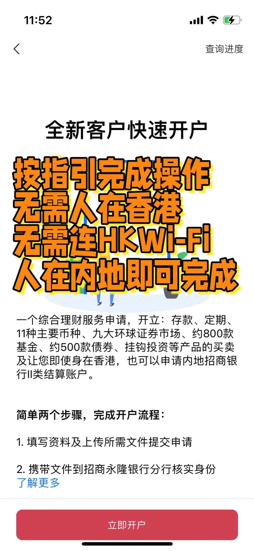 最后写了指南[可爱的R] 可以说,它完美地继承了优势 app操作顺畅,存取款几乎秒到【整月R】 深受内地客户特别是中巴球迷的青睐[如R] 唯一的小缺陷是需要存款100万港元 只有这样,我们才能免除每月100元的管理费[面部遮盖R] 开一个【傲人R】还是非常值得的 而且这个过程非常人性化。 主要分为以下两个步骤: 一️⃣ 网上开户 不需要去香港,人们可以坐在中国大陆的家里。下载招商永隆App,按照步骤说明(详细信息请参考图片指南),成功完成【开户】【傲R】第一步 二️⃣ 离线激活 收到成功的开户短信后,您需要亲自前往香港 选择热门招商永隆分行完成激活动作。 关键在这里[右斜视] 我强烈建议大家直接去分行[像R一样] 具体路线如图[YeR]所示 这家分店不仅交通便利(就在E2入口) 有5个柜台专门负责开户和激活服务‼️ 所以通话很快[像R] 当开通账号并激活后,他收到通知,面前有5个人, 我会在附近拍照和收集资料。 谁知道不到15分钟,他就对我喊道[又笑又哭R] 这种效率简直就是一次闪电销售 接待我的小姐姐甚至不会说广东话 这家分店有点专门为中国大陆人服务的味道[皱眉R] 而对方业务能力强, 三乘五除以二,为我激活它。 我想拍一些柜台内部的照片,并留下一些材料,但我没有时间[失望的R] 最后,小姐姐提醒我, 如果你需要使用实体卡,现在可以帮我在应用程序上申请 关键是:直接进入大陆[像R] 我得给招商永隆连续三个赞 至少它不会像其他银行那样被普通邮件丢失 最后 记得开卡后存入10000港元,否则下个月扣除100笔交易费用[封面R] 今天的开户指南到此结束。国债仍然想看看在哪家银行开户。