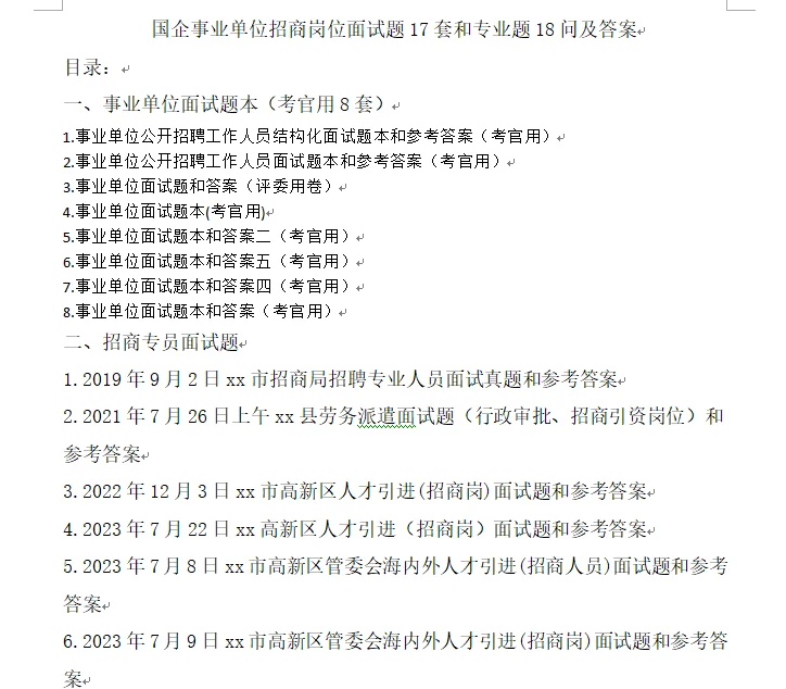 目录 1、 事业单位面试题本(考官8套) 1.公共机构公开招聘工作人员结构化面试题本及参考答案(供考官使用) 2.事业单位公开招聘工作人员面试题本及参考答案(供考官使用) 3、事业单位面试问答(面向法官) 4.事业单位面试题本(供考官使用) 5.事业单位面试题本及答案2(供考官使用) 6.事业单位面试题本及答案5(供考官使用) 7.事业单位面试题本及答案四(供考官使用) 8.事业单位面试题本及答案(供考官使用) 2、 投资促进专家访谈问题 XX投资促进局2019年9月2日招聘专业人员面试问题及参考答案 2021年7月26日上午XX县劳务派遣面试问题及参考答案(行政审批、招商职位) 2022年12月3日XX高新区人才引进(招商职位)面试问题及参考答案 2023年7月22日XX高新区人才引进(招商职位)面试问题及参考答案 XX高新区管委会2023年7月8日国内外人才引进(投资人员)面试问题及参考答案 XX高新区管委会2023年7月9日国内外人才引进(招商职位)面试问题及参考答案 2023年7月XX工业园区直属国企人才引进(招商职位)面试问题及参考答案 8、居民投资人员面试问题及考官分析 3、 国有企事业单位招商职位面试问答(专业问题18) 问题1:您预计未来在开展招商服务时会遇到哪些问题你认为应该采取什么措施来防止出现问题 问题2:如果你被录取了,在到达某个单位后不久,你的领导要求你制定一个招商计划。你将如何完成它 问题3:顾名思义,商业认可意味着了解投资者,了解公司,并与投资者和公司建立定期联系。如果你通过了面试,你将如何在商业认可方面扎实有效地工作 部分内容摘录: 2023年7月9日XX高新区管委会关于引进国内外人才(招商职位)的面试问题 问题1 谈谈你对高新区产业的理解以及未来如何进行相关研究。 问题2 根据你的专业,你计划如何在未来开展工作你认为未来工作中最具挑战性的事情是什么你认为你还需要改进哪些方面