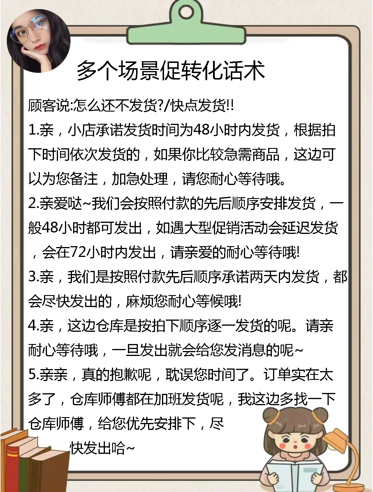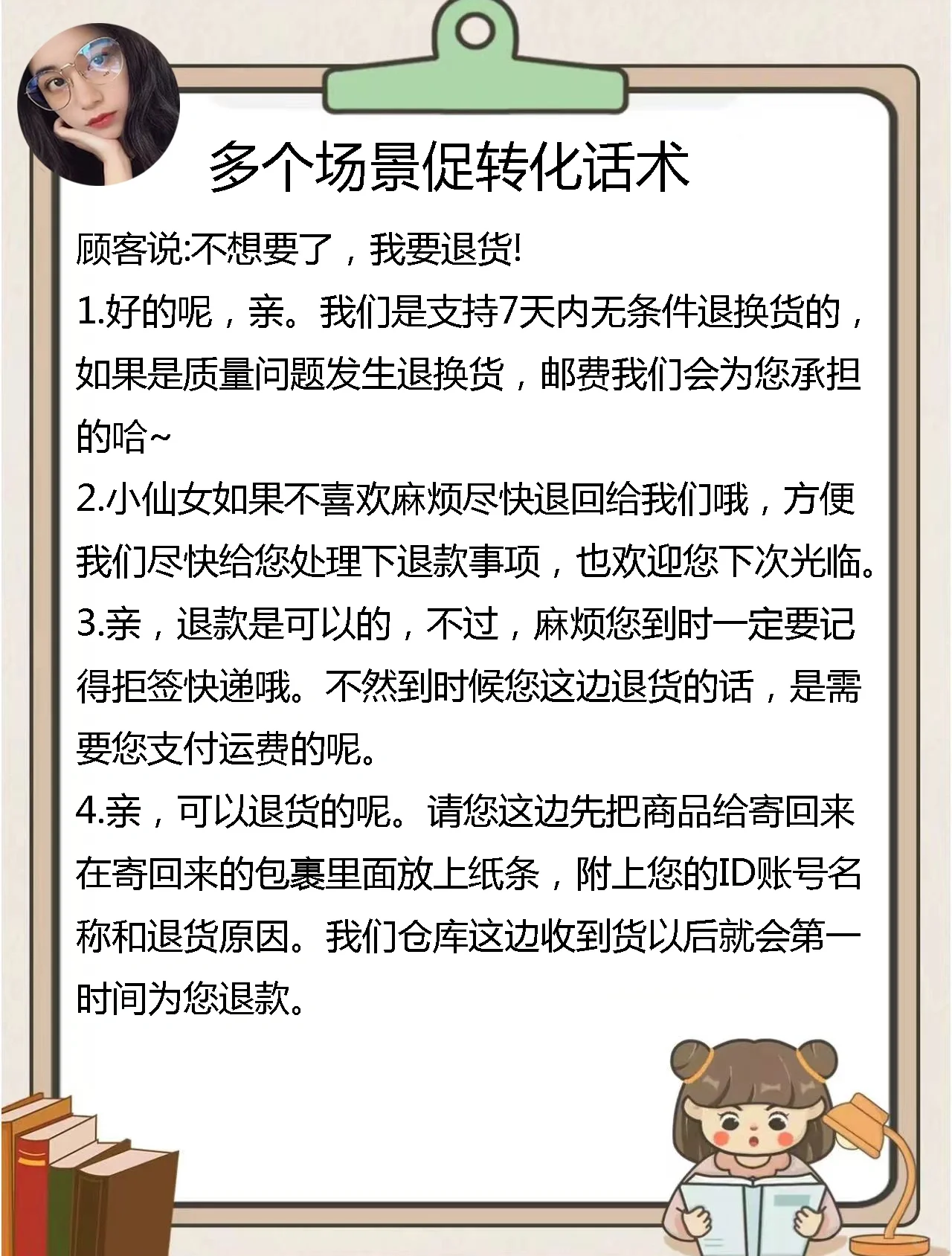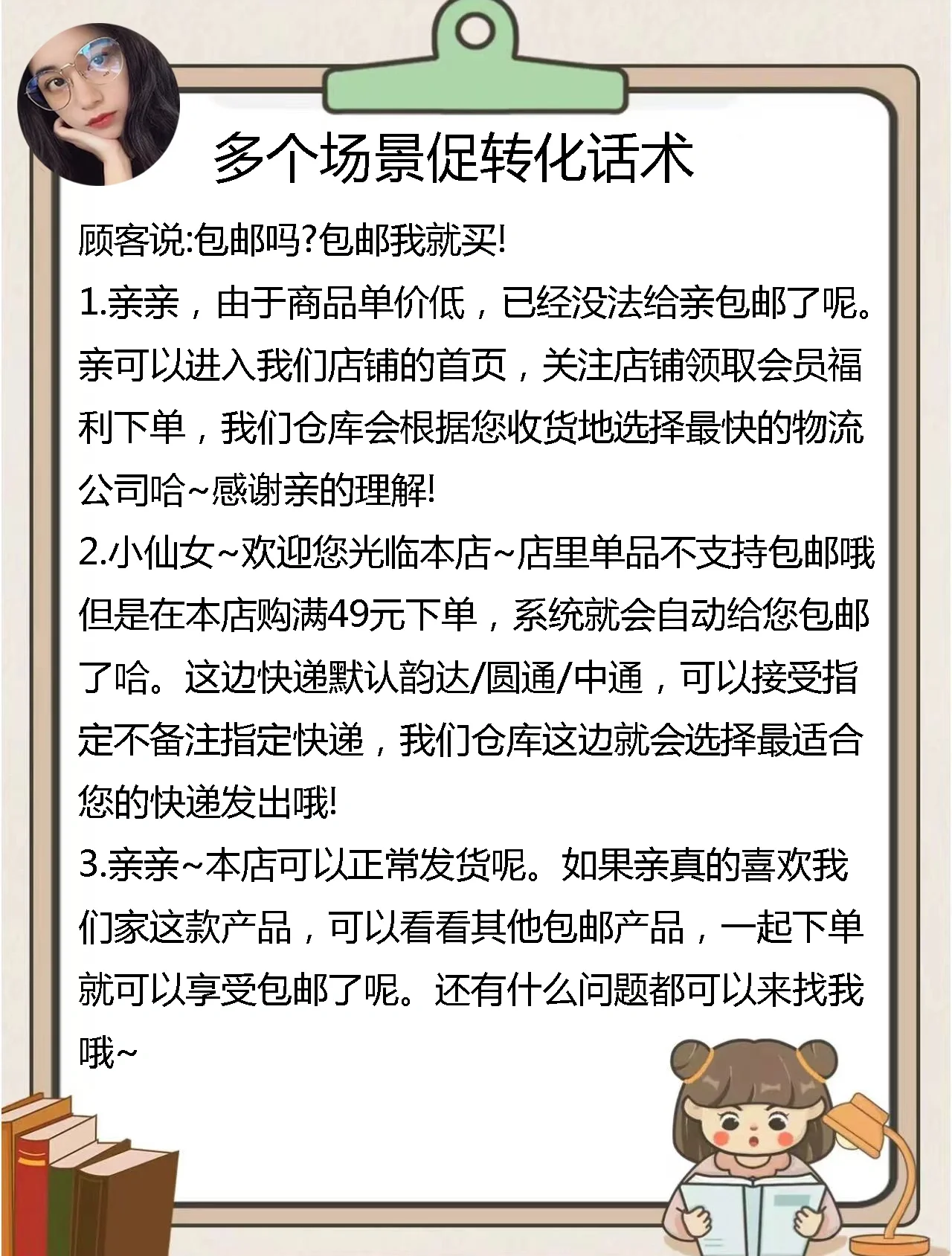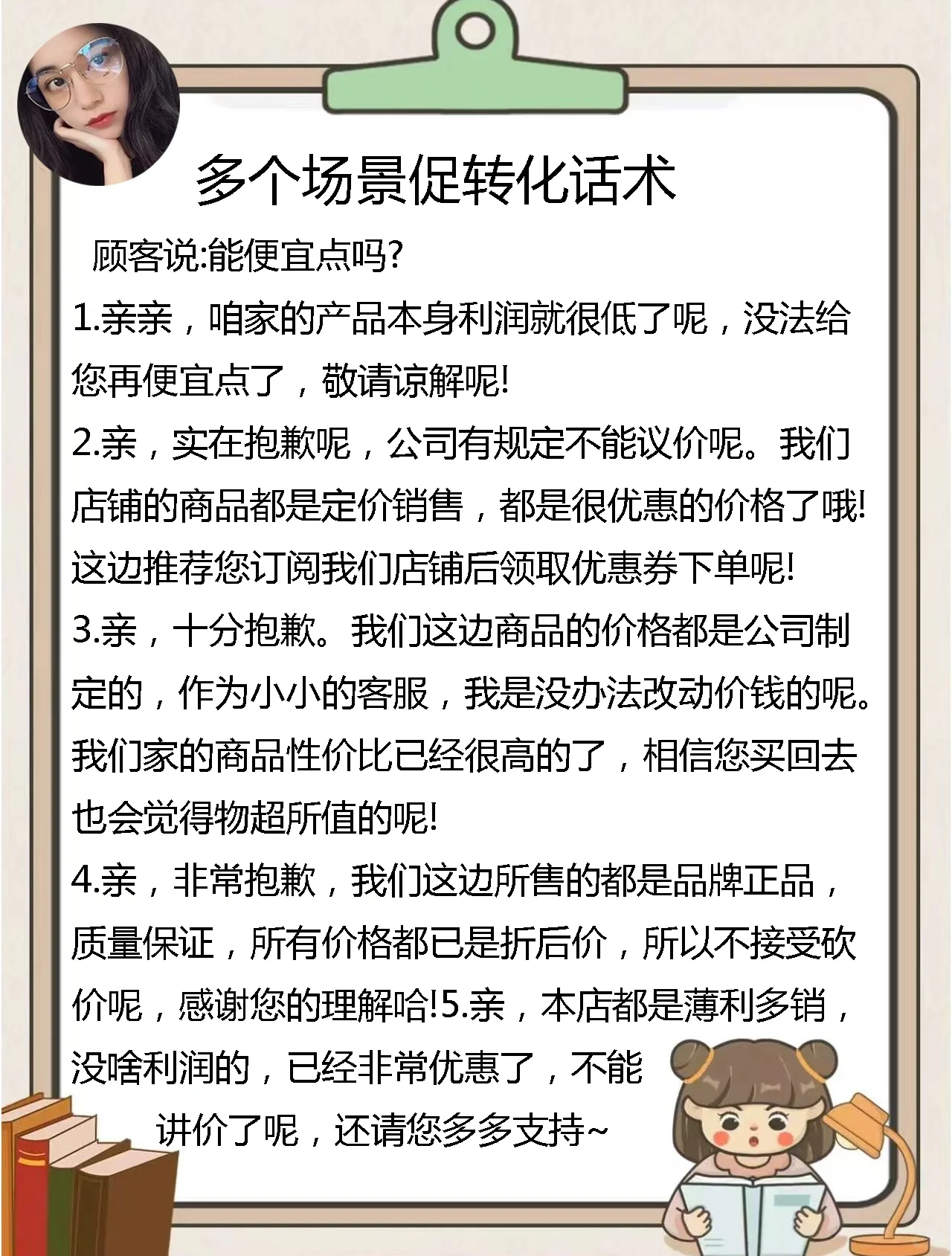 在开店的过程中,我们经常会遇到各种类型的顾客 在家庭中,他们要么犹豫,要么攀比,要么只是来散散步。那个 如何使用适当的语言指导客户在不同场景下下单并提高绩效 转化率非常重要!今天,Vivi就要和大家分享一个多场景下促进转化的脚本。如果你是卖家、客服经理或电子商务客服代表,那么你必须抓住它!,记住,每个客户都是独一无二的,灵活使用你的语言,让他们感受到你的真诚和专业,转化率自然会上升!
