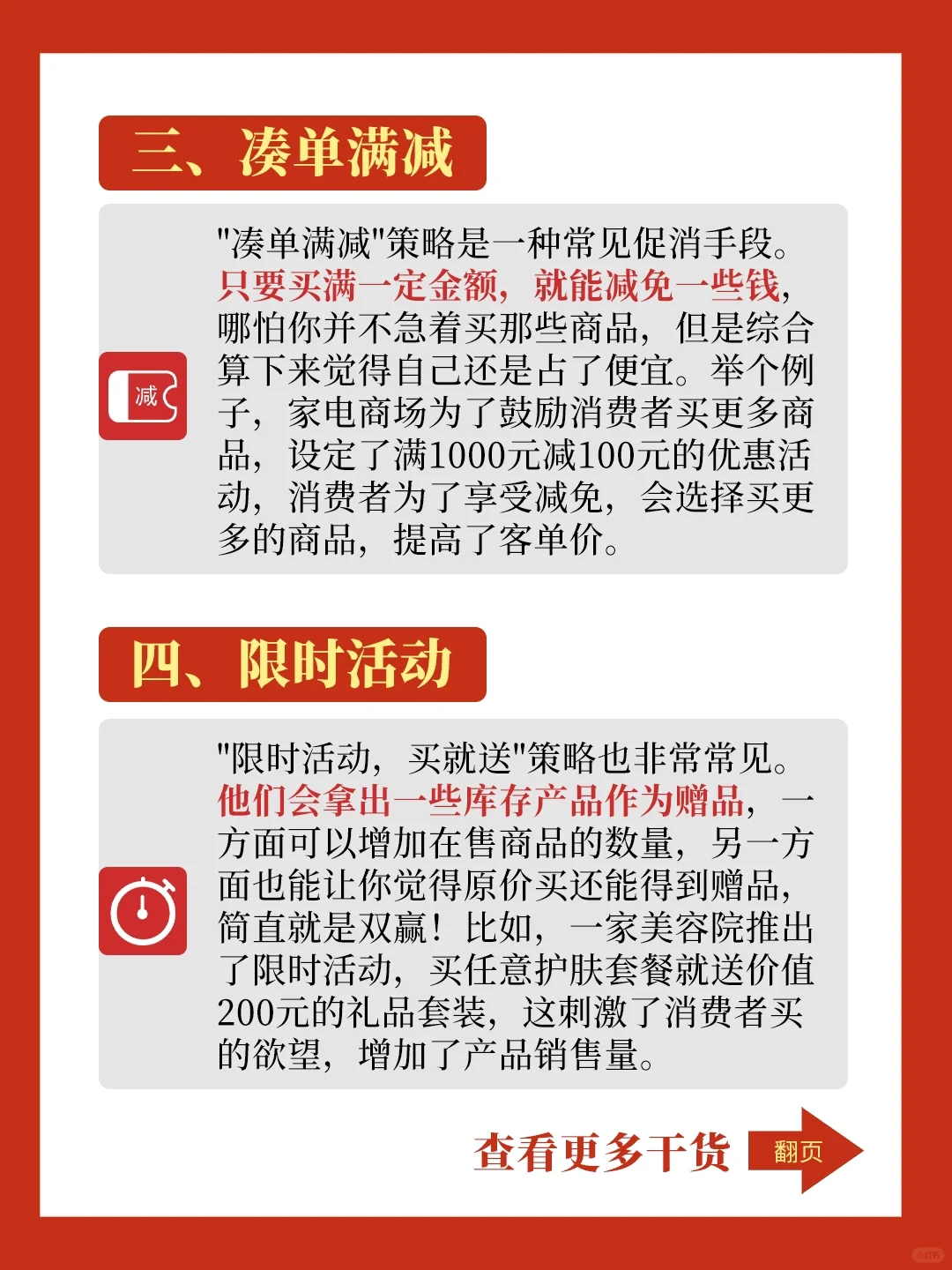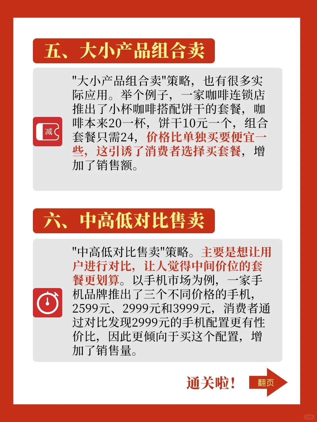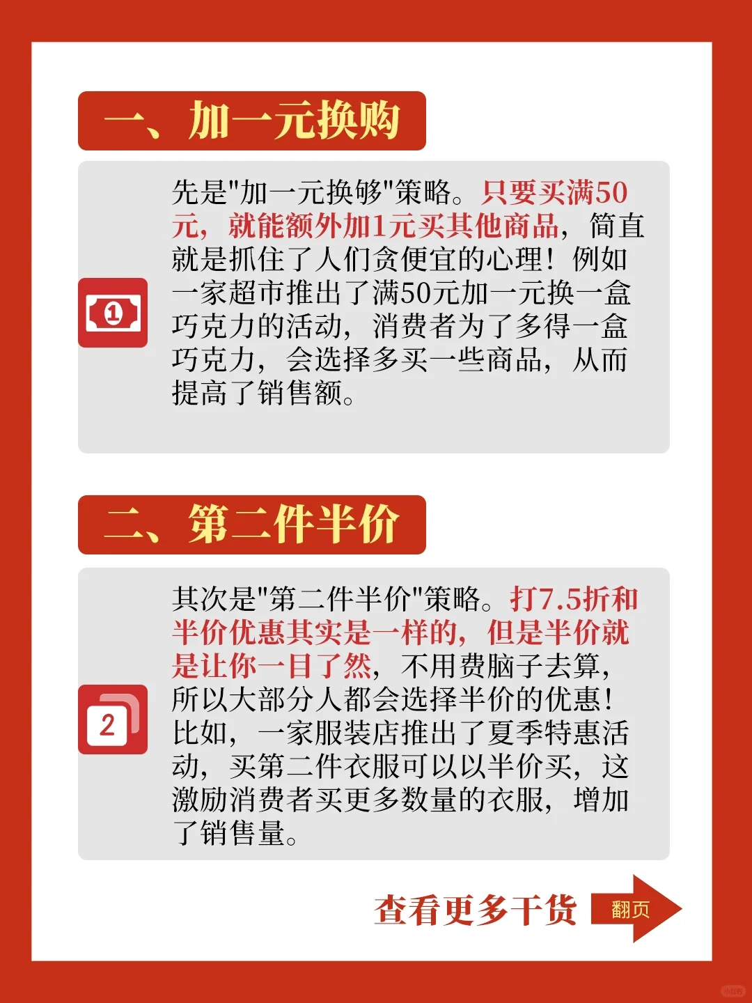 今天我想揭开营销的真相!说到这些营销策略,成功利用人性中爱占优势的弱点,你可以学习如何在私域营销中提高50%的转化率。 首先,有“加一元换一元”的策略。只要购买达到50元,就可以额外增加1元购买其他产品,这简直抓住了人们对廉价商品的贪婪!例如,一家超市推出了一项促销活动,增加一元钱可以换取一盒50元以上的巧克力。为了多买一盒巧克力,消费者会选择购买更多的产品,从而增加销售额。 其次是“第二项半价”策略。七五折和半价优惠其实是一样的,但半价只是为了一目了然,不需要思考,所以大多数人都会选择半价优惠!例如,一家服装店推出了夏季折扣,第二件衣服可以半价购买,这激励了消费者购买更多衣服,并增加了销售额。 “集中订单、降低成本”的“三R”战略是促进消费的常用方式。只要你买了一定的量,你就可以减少一些钱,即使你不急于购买这些产品,但总的来说,你仍然觉得自己有优势。例如,为了鼓励消费者购买更多的产品,家电店为1000元以上的消费者提供了100元的折扣。为了享受降价,消费者会选择购买更多的产品,这会提高每位顾客的单价。 “限时促销,随送随取”的策略也很常见。他们会拿出一些库存产品作为礼物,这样可以增加在售产品的数量,让你觉得你仍然可以以原价获得礼物,这是一个双赢的局面!例如,一家美容院推出了限时促销活动,为任何护肤包赠送价值200元的礼品套装,这刺激了消费者的购买欲望,提高了产品销量。 将小型和大型产品结合销售的策略也有许多实际应用。例如,一家咖啡连锁店推出了一套菜单,里面有小杯咖啡和饼干。咖啡最初的价格是20元一杯,饼干的价格是10元一杯。组合套餐只需24元,比单独购买便宜。这吸引了消费者选择购买套餐,并增加了销售额。 “比高低卖”的策略主要是为了让用户比较并感觉到中等价位的套餐更具性价比。以手机市场为例,某手机品牌推出了2599元、2999元和3999元三种不同价位的手机。消费者通过对比发现,2999元的手机配置更具性价比,因此更倾向于购买该配置,从而增加了销量。 当然,每个行业和市场的情况不同,私域营销人员需要根据实际情况灵活调整和创新。