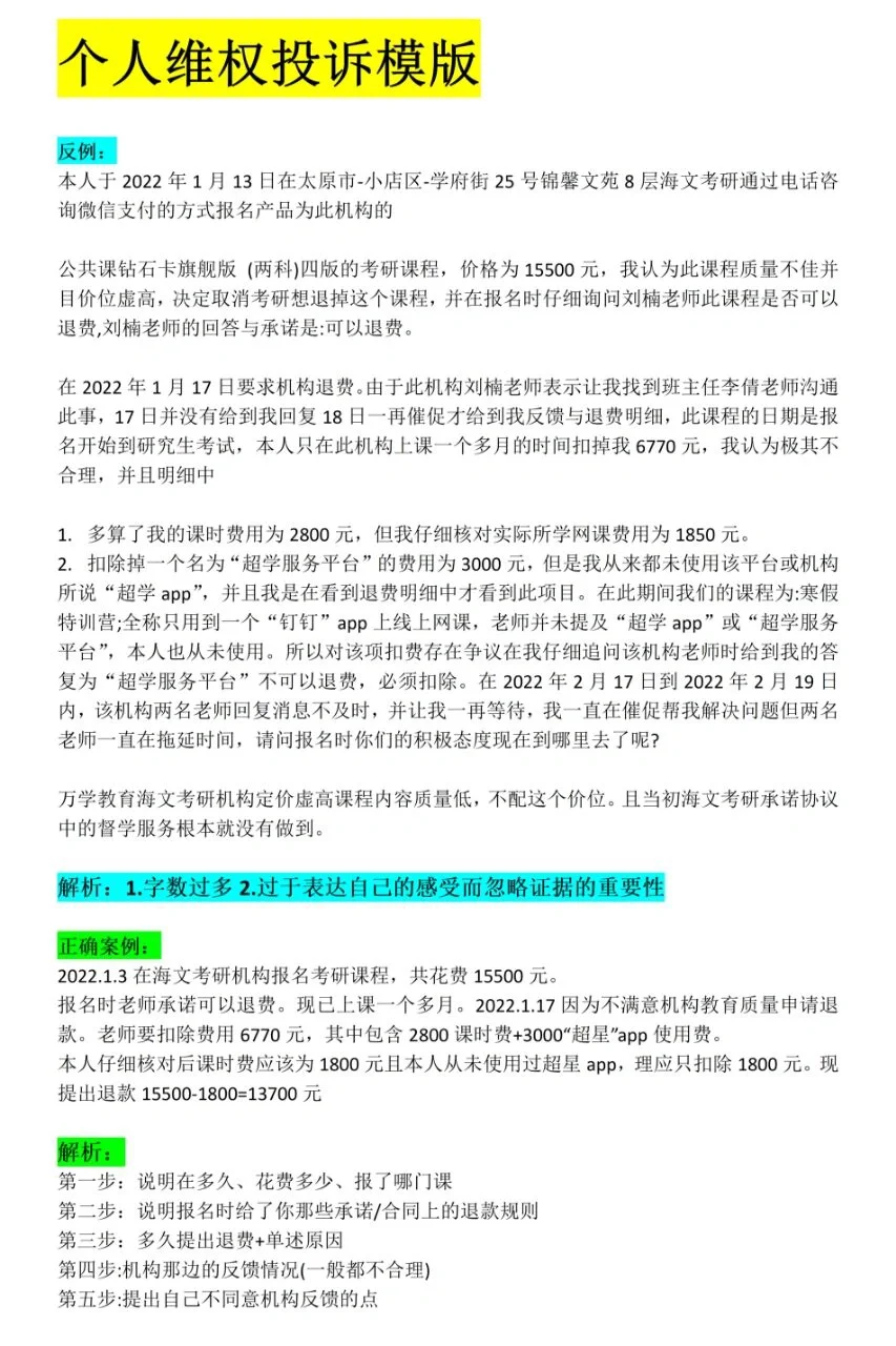 红薯朋友们,遇到教培机构退款、健身房费用、医美费用、情感机构退款等问题时,千万不要光靠12315消费者维权投诉!我在这里给大家介绍几个快速投诉渠道,可能比12315处理投诉更高效、更有效!希望这些建议能对大家有所帮助 一⃣ 国医院客户(带迷你程序): 打开后,选择“我想离开严”功能,根据需要填写信息,然后提交。 二⃣ Leader L平台(带迷你程序): 无良商人反对地方领导人的行为 只要你提交,你就可以得到处理,它不会白白结束。 三⃣ 黑猫投诉平台(包含迷你程序和应用程序): 提交必要的证据,如订单号、付款凭证、相关截图等,按照页面上的说明完成并提交。 四⃣ 消费者保险(带迷你程序): 输入申请后,找到并点击底部菜单中的“投诉”,填写所需信息并提交。 这三种方法都很方便,只是提供了一些基本信息。只要您的问题是真实的,并且符合投诉标准,在大多数情况下都可以快速审查和批准。 五⃣ 政府Z心(带迷你程序): 当面临企业问题时,选择这个平台很重要。他们的服务态度好,反应比较快。 六⃣ 消费者保险投诉(带迷你程序): 主要负责处理消费者投诉和举报,业务范围广,处理周期一般为7个工作日。