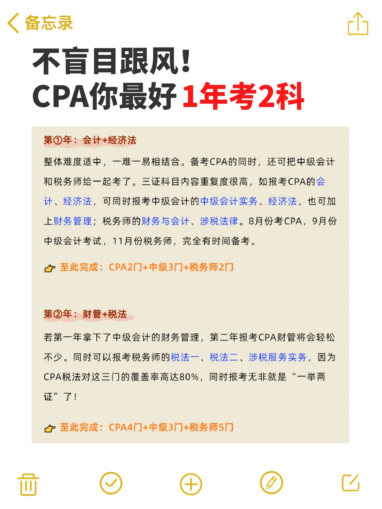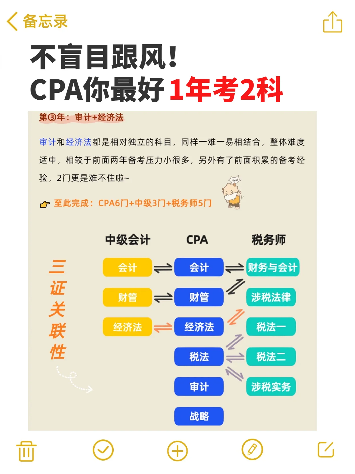 你有没有看到有人一年要考五六门注册会计师它真的很时髦,但不要盲目跟风!注册会计师考试其实没那么简单!大多数考生选择用2-3年的时间来完成专业阶段的考试,这更安全。后期综合阶段没有时间限制,所以你可以轻松应对! 聪明的准备,一年修两门课,可以保证质量,获得更多认证! ✨ 第一年:会计+经济法 同时,为三名中级会计和税务专业人士挑战财务、会计和税务服务的法律方面!一步多做是不是很划算 ✨ 第二年:财务管理+税法 继续努力,以税务会计的身份申请税务第一、税务第二、税务相关服务实践!一步一步朝着目标前进! ✨ 第三年:审计+战略 最后一年,冲刺中级会计师、注册会计师、税务会计师三证!拿到三证三年了,是不是很有成就感呢 为什么我可以同时参加这么多考试图2中每个主题之间的联系已经得到了回答!快点仔细看一看!
