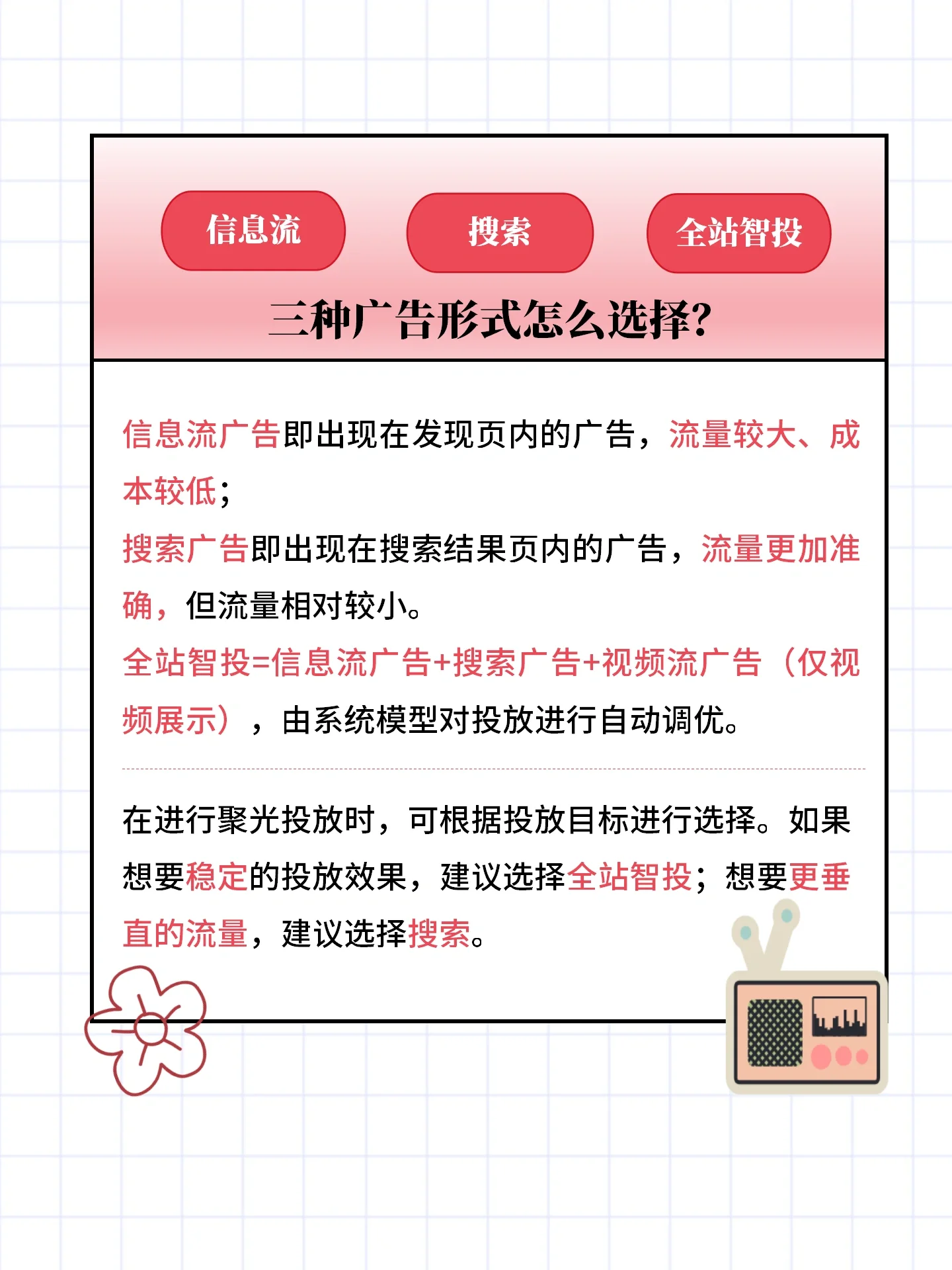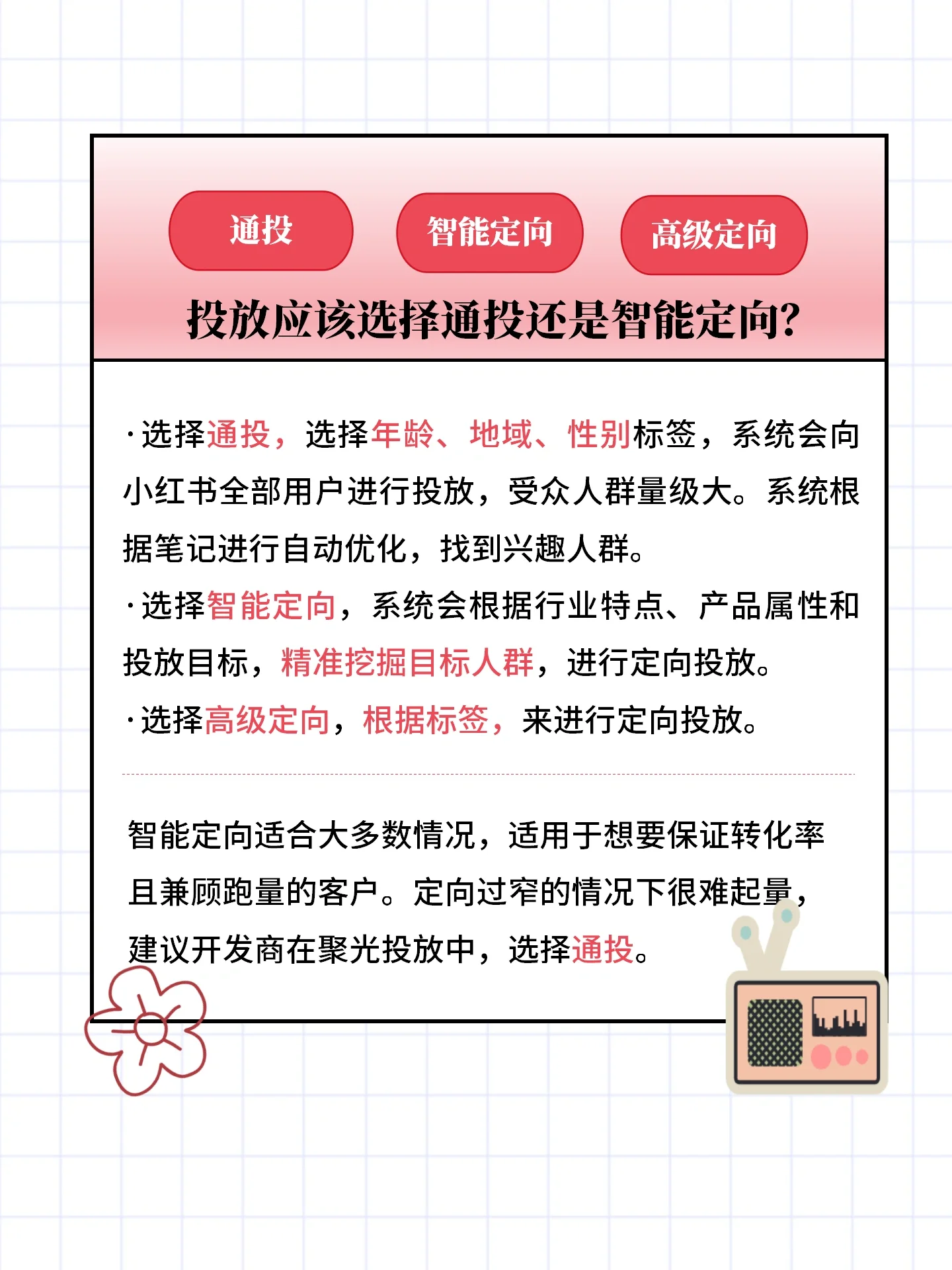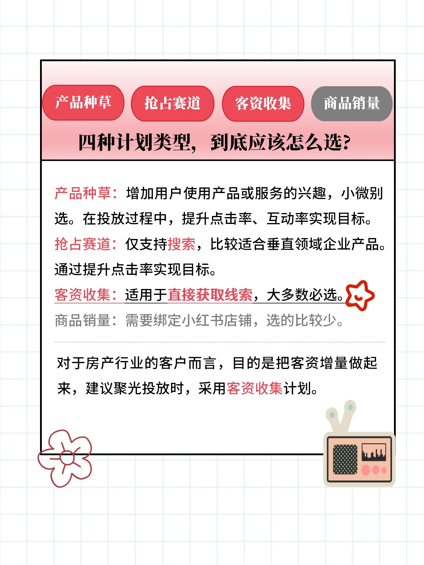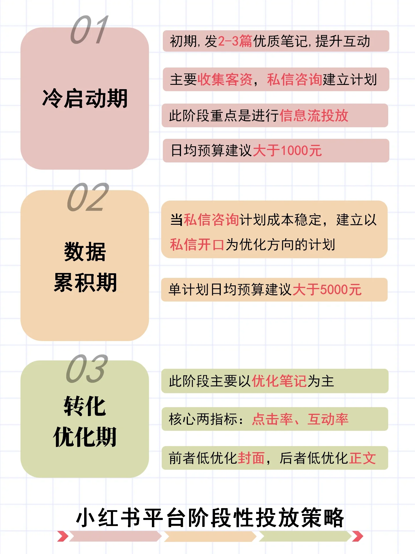 “聚光平台”是小红书的投资平台,包括信息流和搜索广告位的投资。 【绿心R】信息流:主要是指主页上的流量,流量相对较大,广告成本会更低。它位于第6、第16和第26位置 【黄色心形R】搜索:主要在搜索端,流量相对较小,但流量准确,对应的竞争更大;位置在位置3、13和23 【红心R】全站智投:主要覆盖搜索和信息流,属于系统智投(目前投资效果也比较稳定) 【右R】好的音符内容是投资的基础。收集房地产行业的热门投资笔记,例如搜索房地产关键词,然后在右下角找到带有“赞助”或“广告”字样的笔记。记住这张纸条的内容和你自己的业务是一样的,然后参考一下。至少收集一下分析这10篇文章中哪种类型的文章最多,它们的封面标题内容有什么共性,然后写广告笔记; [YeR]需要同时发布多张票据和多个计划。在发布过程中,需要发布多个笔记和计划,以计算出更具成本效益的一个,然后继续发布。 [掌声R]有必要对流程的每一步的数据统计进行审查,包括点击率、互动率、私信查询数量、访客数量等。