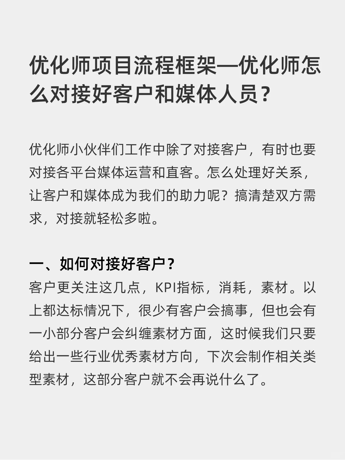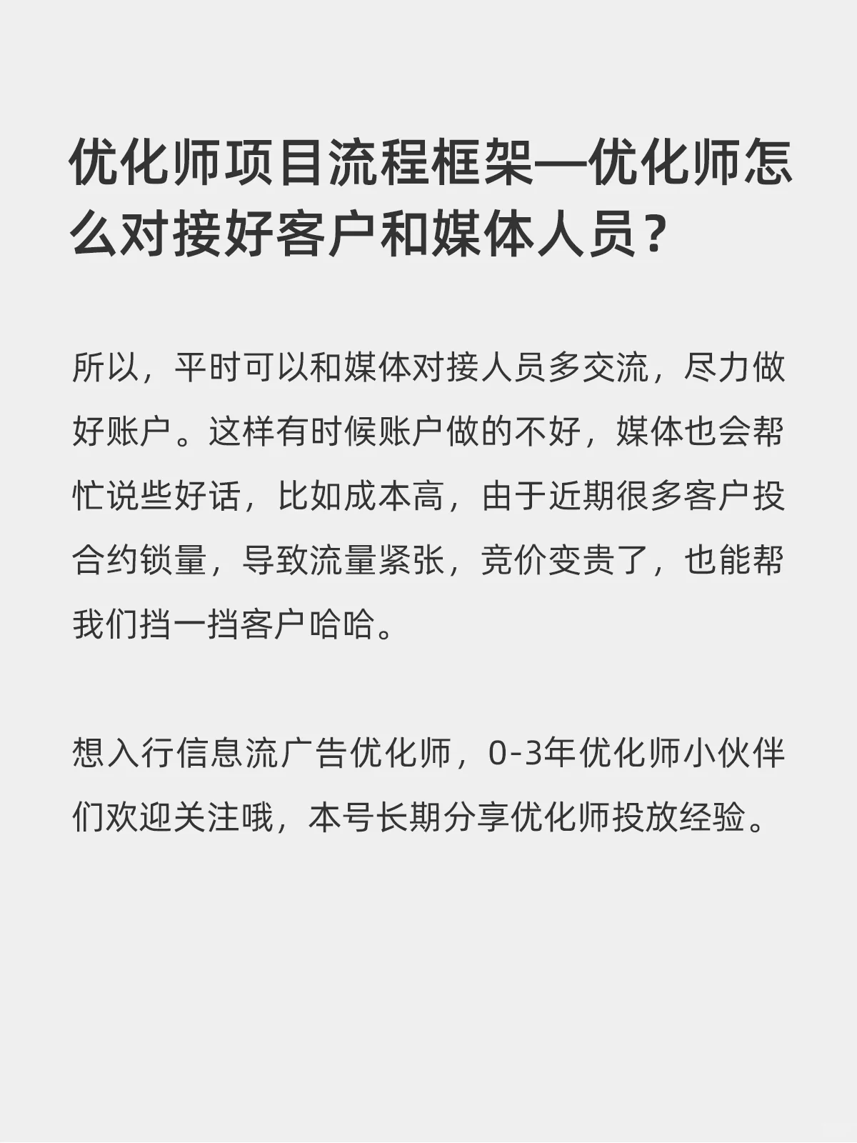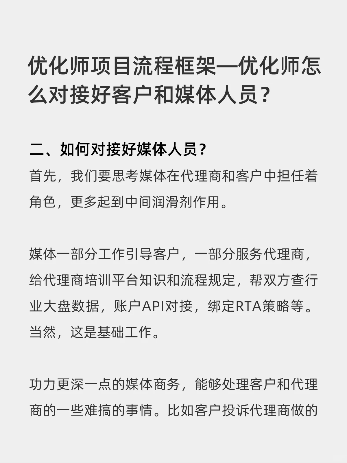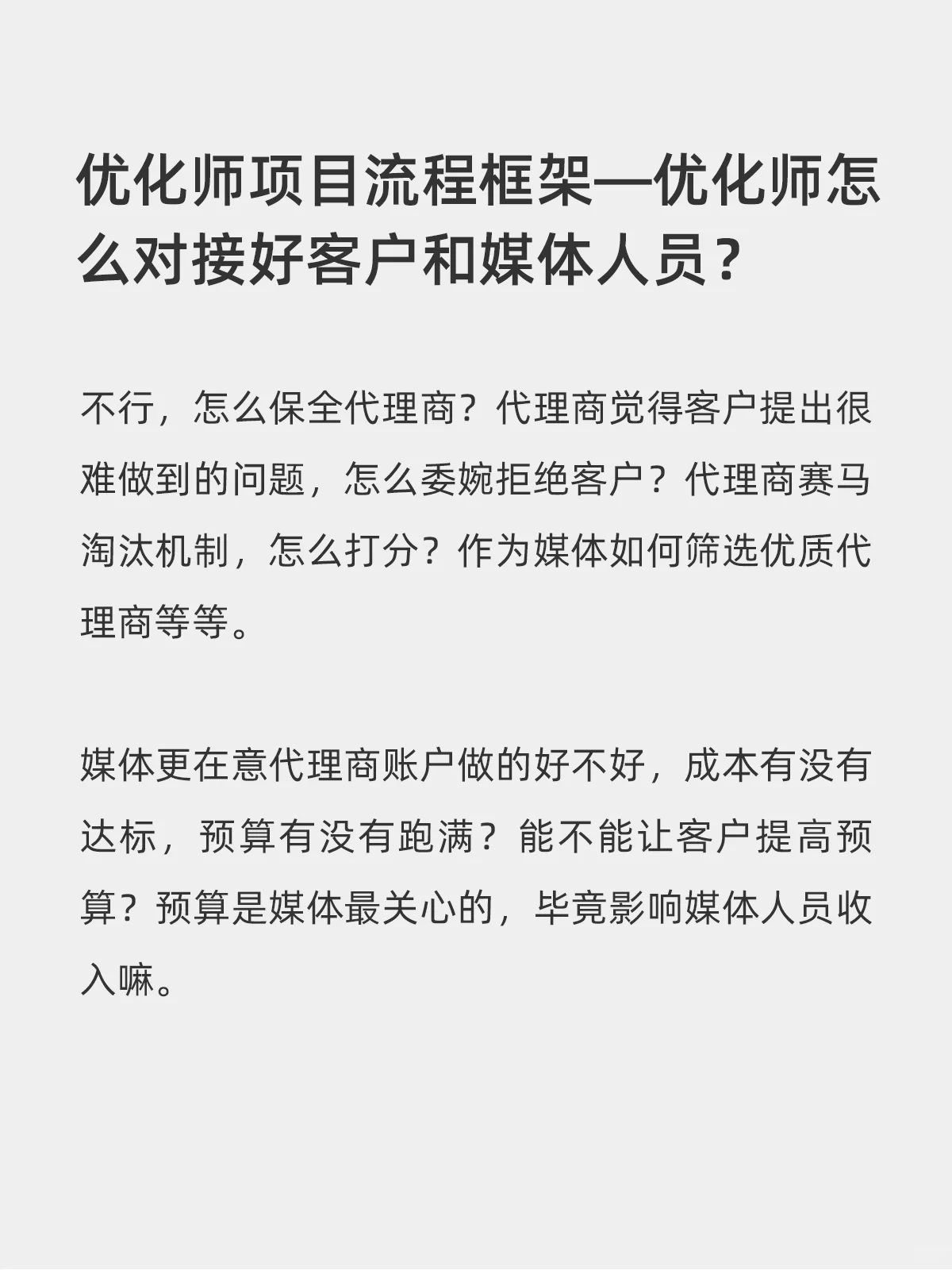 为了优化团队成员在工作中与客户和媒体之间的联系,除了与客户保持沟通外,也需要与媒体保持沟通。保持良好的关系,使客户和媒体都能了解彼此的需求,这将有助于促进更顺畅的沟通。 1、如何与顾客建立良好的联系? 顾客更注重关键绩效指标、消耗和原料。大多数情况都很顺利,很少有顾客会引起麻烦,不过也有一些顾客特别注重材料问题。对于这种情况,我们会提供优质的行业材料建议,并专心准备下一次生产。认真对待此类顾客。 随后,如果各项考核指标未达标,可能会导致客户提出问题。有些客户很坦诚,我们会运用专业的方法来说服他们。比如,如果绩效指标未达标、成本较高,我们将从市场流量、行业投资客户和投资数据的角度对其进行解释。 随着假期的逼近,很多客户被困在合同中,导致总体流量增高,成本上升。假期结束后,交通堵塞的成本会增加。我们需要与媒体协调一下,因为一些客户可能会询问媒体流量的情况。 可以大致概括其他行业客户的投资情况,不必过于详细。最近成本大幅上涨,导致与其他行业客户放置XX产品相比,行业客户要付出更高的费用。这将有助于他们了解市场现状并更好地与老板交流。 可以以市场整体销售情况为依据,进行再次创新,以指引未来材料发展方向,并让客户了解我们在不断努力优化。在这方面,客户可以放心,我们已经做到这一点。 如果广告数据出现不佳,可以向客户解释最近流量和素材下降是否导致成本上升。重新设计账户流量广告、用户人口统计以及优化措施,例如通过扩大目标城市和年龄范围来降低账户成本。 2、建立良好的媒体人际关系的方法是什么? 首先,我们要思考媒体在代理商和客户之间的作用,它起到了更像是中间的润滑剂角色。 媒体工作的一部分涉及指导客户、协助代理商、培训代理商了解平台知识和流程法规,帮助双方核查行业数据,连接账户API并绑定RTA策略。当然,这些都是基础性工作。 一个技能更为深厚的媒体企业可以协助客户和代理商处理一些复杂问题。例如,若客户抱怨代理商表现不佳,我们需保护代理商,当客户发现难以解决问题时,代理商应如何礼貌地拒绝他们。特工Racing如何评价消除措施,如何筛选高品质的代理商作为媒体,等等。 媒体更关心代理商账户的绩效,成本是否符合标准,预算是否充分利用。我们是否可以要求客户增加预算?预算是媒体最关注的,因为它直接影响媒体人员的收入。 因此,我们可以积极与媒体的联系人进行更多沟通,尽力保持良好关系。有时候即使账户表现不佳,媒体也会帮忙说一些积极的话,譬如成本高。近期客户合约数量增加,流量压力加大,投标也变得更具挑战性。