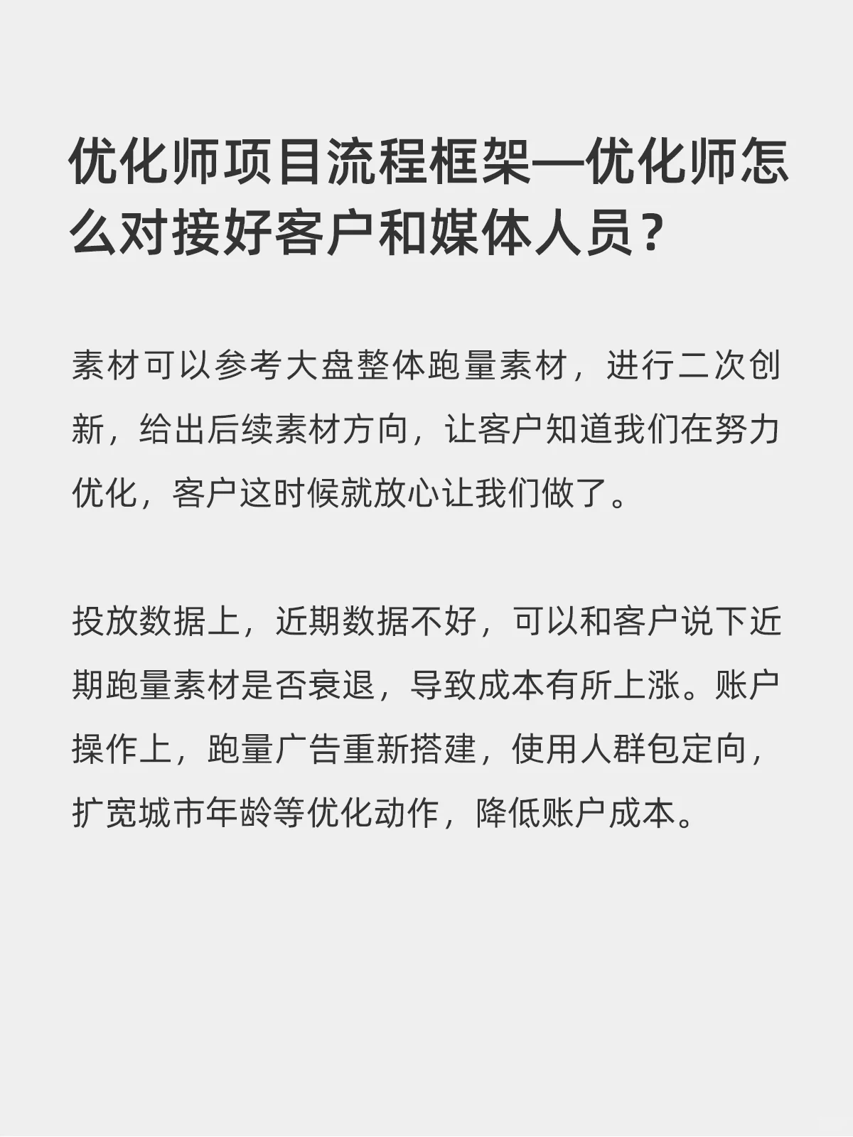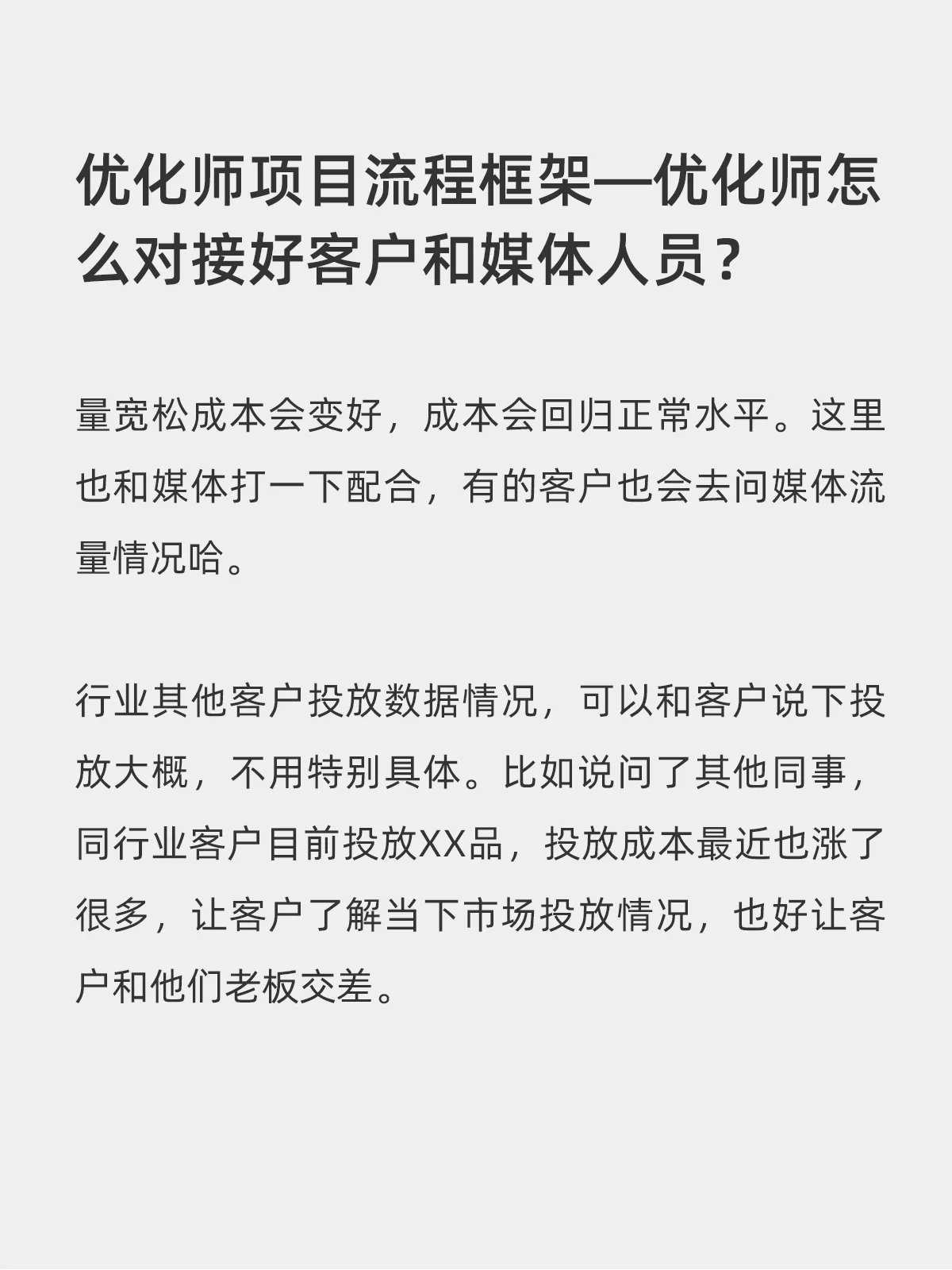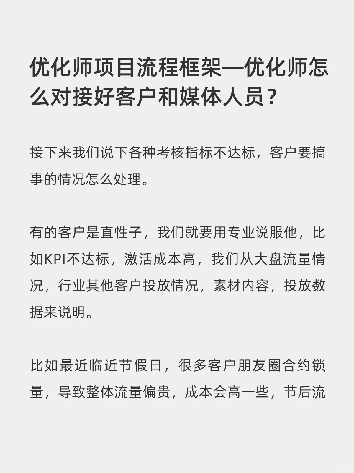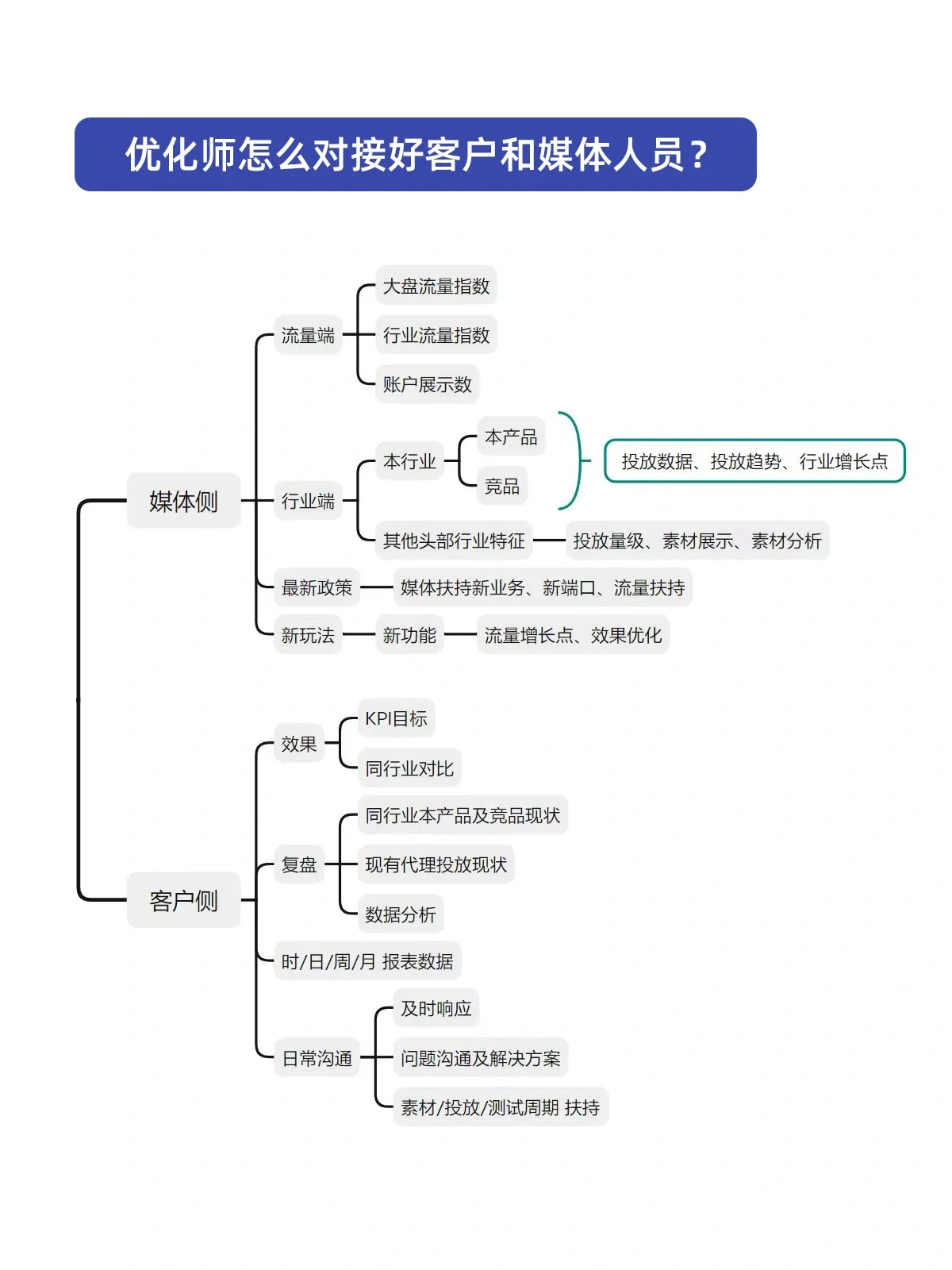 为了优化团队成员在工作中与客户和媒体之间的联系,除了与客户保持沟通外,也需要与媒体保持沟通。保持良好的关系,使客户和媒体都能了解彼此的需求,这将有助于促进更顺畅的沟通。 1、如何与顾客建立良好的联系? 顾客更注重关键绩效指标、消耗和原料。大多数情况都很顺利,很少有顾客会引起麻烦,不过也有一些顾客特别注重材料问题。对于这种情况,我们会提供优质的行业材料建议,并专心准备下一次生产。认真对待此类顾客。 随后,如果各项考核指标未达标,可能会导致客户提出问题。有些客户很坦诚,我们会运用专业的方法来说服他们。比如,如果绩效指标未达标、成本较高,我们将从市场流量、行业投资客户和投资数据的角度对其进行解释。 随着假期的逼近,很多客户被困在合同中,导致总体流量增高,成本上升。假期结束后,交通堵塞的成本会增加。我们需要与媒体协调一下,因为一些客户可能会询问媒体流量的情况。 可以大致概括其他行业客户的投资情况,不必过于详细。最近成本大幅上涨,导致与其他行业客户放置XX产品相比,行业客户要付出更高的费用。这将有助于他们了解市场现状并更好地与老板交流。 可以以市场整体销售情况为依据,进行再次创新,以指引未来材料发展方向,并让客户了解我们在不断努力优化。在这方面,客户可以放心,我们已经做到这一点。 如果广告数据出现不佳,可以向客户解释最近流量和素材下降是否导致成本上升。重新设计账户流量广告、用户人口统计以及优化措施,例如通过扩大目标城市和年龄范围来降低账户成本。 2、建立良好的媒体人际关系的方法是什么? 首先,我们要思考媒体在代理商和客户之间的作用,它起到了更像是中间的润滑剂角色。 媒体工作的一部分涉及指导客户、协助代理商、培训代理商了解平台知识和流程法规,帮助双方核查行业数据,连接账户API并绑定RTA策略。当然,这些都是基础性工作。 一个技能更为深厚的媒体企业可以协助客户和代理商处理一些复杂问题。例如,若客户抱怨代理商表现不佳,我们需保护代理商,当客户发现难以解决问题时,代理商应如何礼貌地拒绝他们。特工Racing如何评价消除措施,如何筛选高品质的代理商作为媒体,等等。 媒体更关心代理商账户的绩效,成本是否符合标准,预算是否充分利用。我们是否可以要求客户增加预算?预算是媒体最关注的,因为它直接影响媒体人员的收入。 因此,我们可以积极与媒体的联系人进行更多沟通,尽力保持良好关系。有时候即使账户表现不佳,媒体也会帮忙说一些积极的话,譬如成本高。近期客户合约数量增加,流量压力加大,投标也变得更具挑战性。