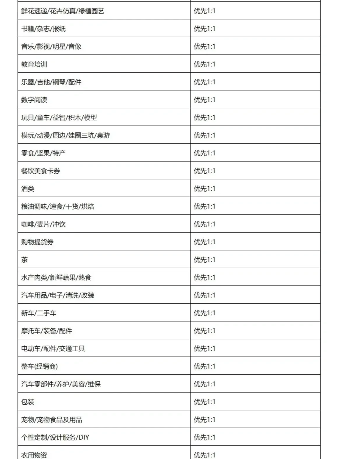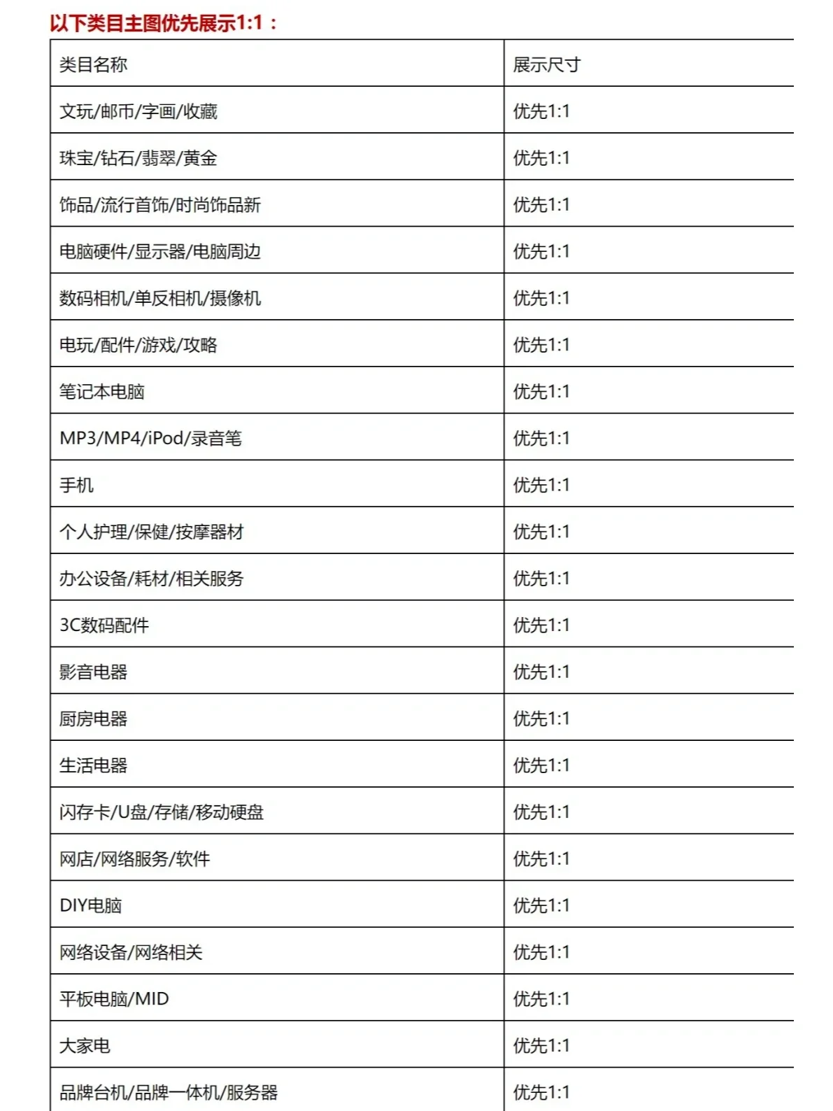 为了提高详细信息的显示效率,核心物流服务、产品福利等信息将全面显示在消费者访问的第一屏幕上,以提高交易转化率。从2024年4月1日起,以下类别的主图像显示优先级将进行调整,从原来的3:4大小优先显示调整为1:1大小优先显示。产品质量分数将不再评估3:4的主图像,建议商家重点保持1:1的尺寸。