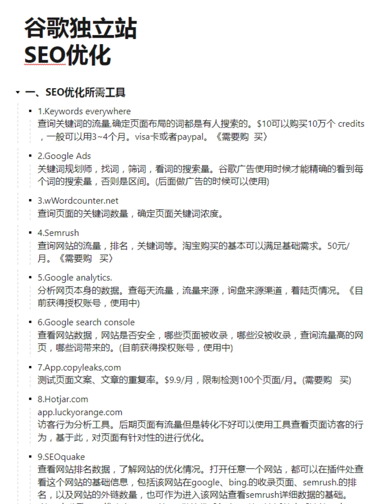 ① SEO优化所需的工具 ② SEO优化内容 ③ 当前优化要求 ④ 实际实施所需的实际内容 完整的优化内容供大家参考和学习