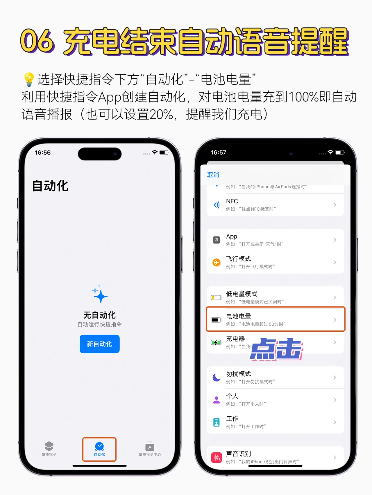 你们都知道苹果关于给手机电池充电的官方建议吗 今天我将与大家分享一些官方建议,也分享一些我的电池维护技巧[如R]。好好使用它们,让你的iPhone再战斗5年 : 苹果官方建议: 新产品是第一次收费吗 当充电至15%以下时,当显示屏显示100%满电时,继续充电约15-30分钟,而无需刻意继续充电。 需要注意的事项 它可以在任何电池级别充电,一天可以充电多次。 电池电量耗尽时不要频繁充电,只需在20%-45%范围内充电即可! 每月至少一次充满电也就是说,当电池电量低于20%时,开始充电并立即将其充满至100%。 充电时请勿使用,因为充电过程中电压和热量结合产生的高温会长期消耗电池并影响其使用寿命。 IOS设备具有过充电保护功能和智能充电管理功能。如果在晚上充电到第二天早上,就没有问题(没有必要故意拔掉插头) 电池维护提示 启用优化的电池充电 [设置]-[电池]-[电池健康与充电]-打开[优化电池充电],iPhone将学习您的日常充电模式,并暂时暂停充电至80%以上,因此充电过夜不会对电池造成伤害 关闭后端应用程序刷新 【设置】-【常规】-【后台APP刷新】-【关闭】。此功能必须关闭,这非常省电。即使关闭,也不会影响某条消息的消息提醒 关闭非必要的应用程序定位 【设置】-【隐私与安全】-【定位服务】-关闭不常用的APP定位。定位是一种非常耗电的行为,不仅可以节省交通,还可以确保电池的健康 关闭应用程序自动更新 【设置】-【应用商店】-关闭自动更新下载,减少手机后台功耗和负担 关闭iPhone分析 【设置】-【隐私与安全】-【分析与改进】-全部关闭,后台自动诊断和变速器关闭,降低功耗和流量消耗 充电结束后自动语音提醒 使用Quick Command应用程序创建自动化,当电池电量达到100%时,该应用程序会自动广播语音消息,以便及时断开充电电缆(或设置为20%以提醒我们充电) 快点️ 收集,当你需要的时候不要错过它