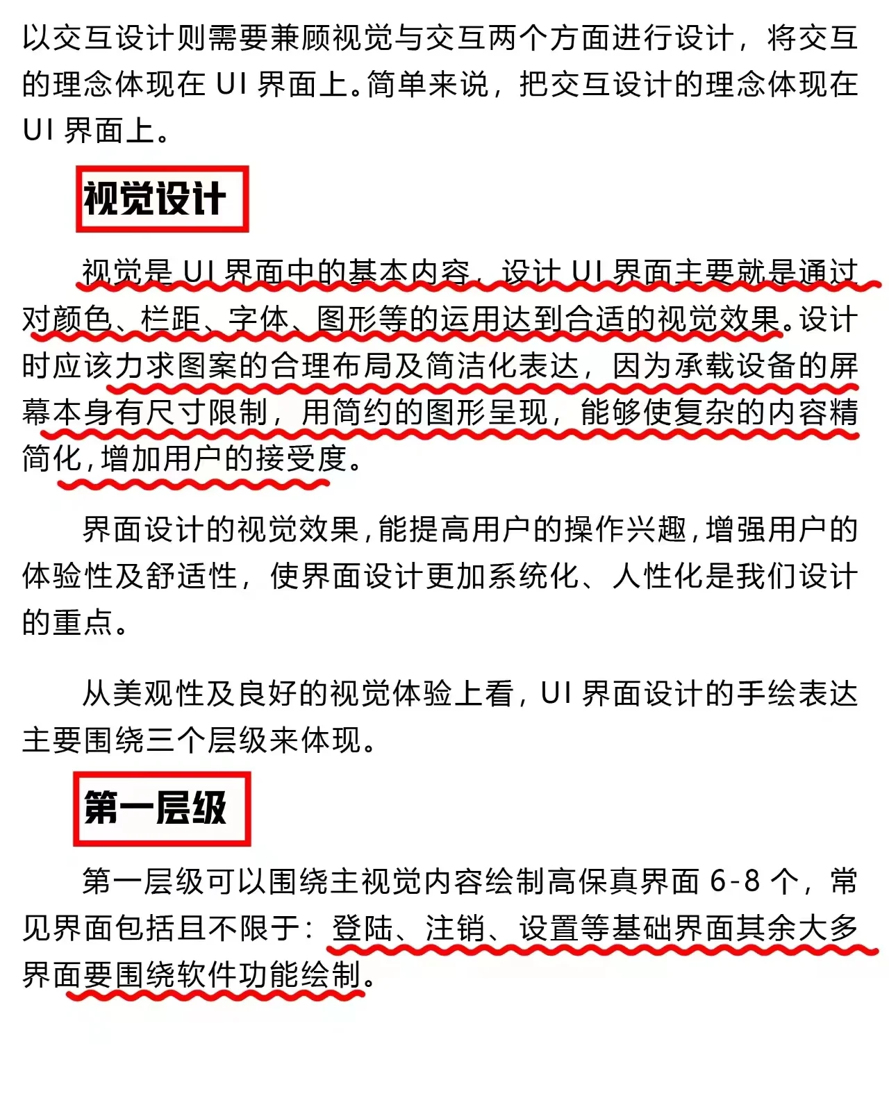 UI界面设计概述 与平面设计、环境艺术设计、工业产品设计等专业相比,UI界面设计的重点不仅在于视觉表达能力,还在于学生的逻辑能力和同理心。因此,要求学生具有观察用户和识别痛点的敏感性,以便使设计方案更加合理、可行和创新。 什么是界面设计(UI): Interface-UI代表用户界面。从广义上讲,UI界面是人与机器交互的操作平台,也就是用户与机器之间传递信息的媒介。 用一句话来说,它是人和机器之间的接口。这种界面实际上反映在我们生活的方方面面。界面设计包括软件的人机交互、操作逻辑和美观界面的整体设计。 在设计UI界面时,我们需要遵循以下步骤。 用户分析 人机交互 视觉设计 一级 第一级可以围绕主要视觉内容绘制6-8个高保真度界面。常见界面包括但不限于登录、注销和设置等基本界面。大多数其他界面应该围绕软件功能绘制。 设计时请记住UI界面的设计原则: 1.保持字体和颜色一致,避免多个字体出现在一组主题中。 2.保持页面上元素的对齐一致,除非有特殊情况,否则避免在同一页面上使用多种数据对齐方法。 无论是在文本的中心对齐、向左对齐还是沿文件的右侧对齐,文本对齐都至关重要,并且会极大地影响可读性。一般来说,文本倾向于左对齐,因为它反映了你的阅读风格——从左到右。您熟悉每一行的开头和结尾。 3.保持语言一致性,如“确定”对应“取消”,“是”对应“否”。 4.确认操作按钮位于左侧,取消或关闭按钮位于右侧。 第二级 第二个层次可以使用徽标、图标、用户肖像和情感板来表达。 徽标有三种常见的绘图效果:将平面图形与文本相结合、纯文本、正面和负面效果以及平面图形。注意线条的整洁和网格系统的严谨性是很重要的。标准几何形状用于通过各种切割、相交、负形或组合创建形状。 偶像 图标和徽标 用户配置文件 情绪板 最后的 当然,为了在UI界面设计中有更好的视觉呈现,手绘能力是必不可少的。因此,学生们不仅需要在未来的备考中丰富知识积累,锻炼创新能力,还需要不断练习和提高手绘技能。
