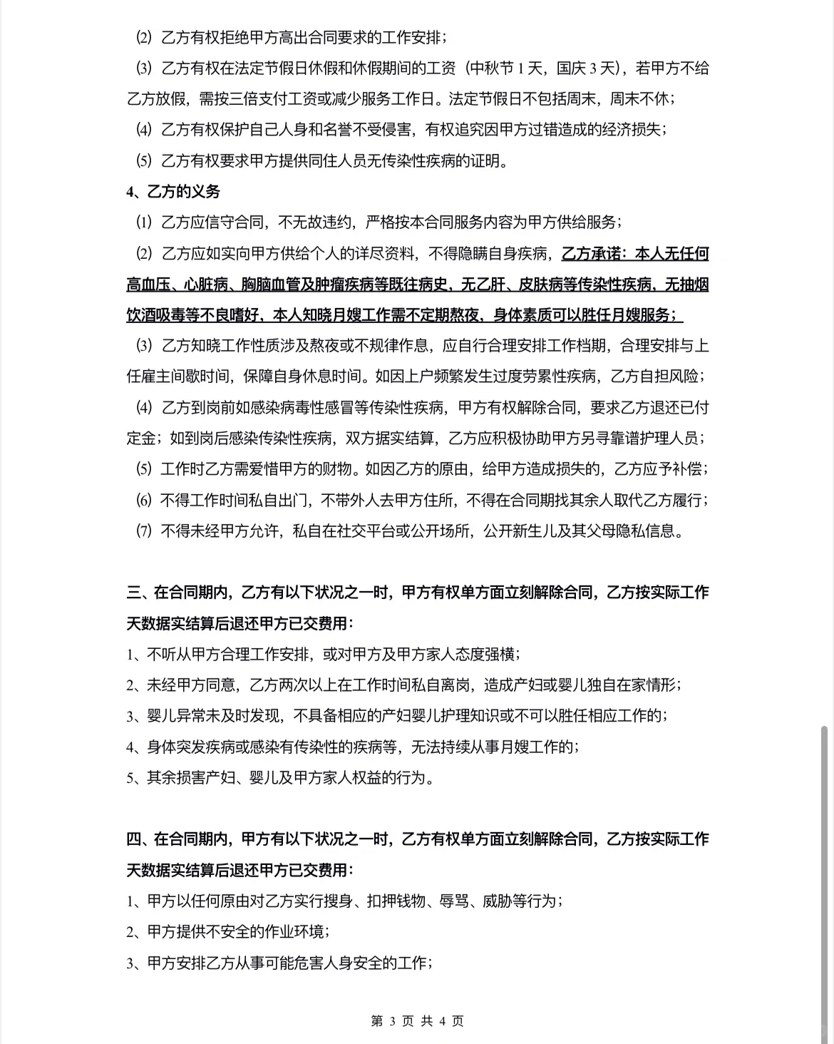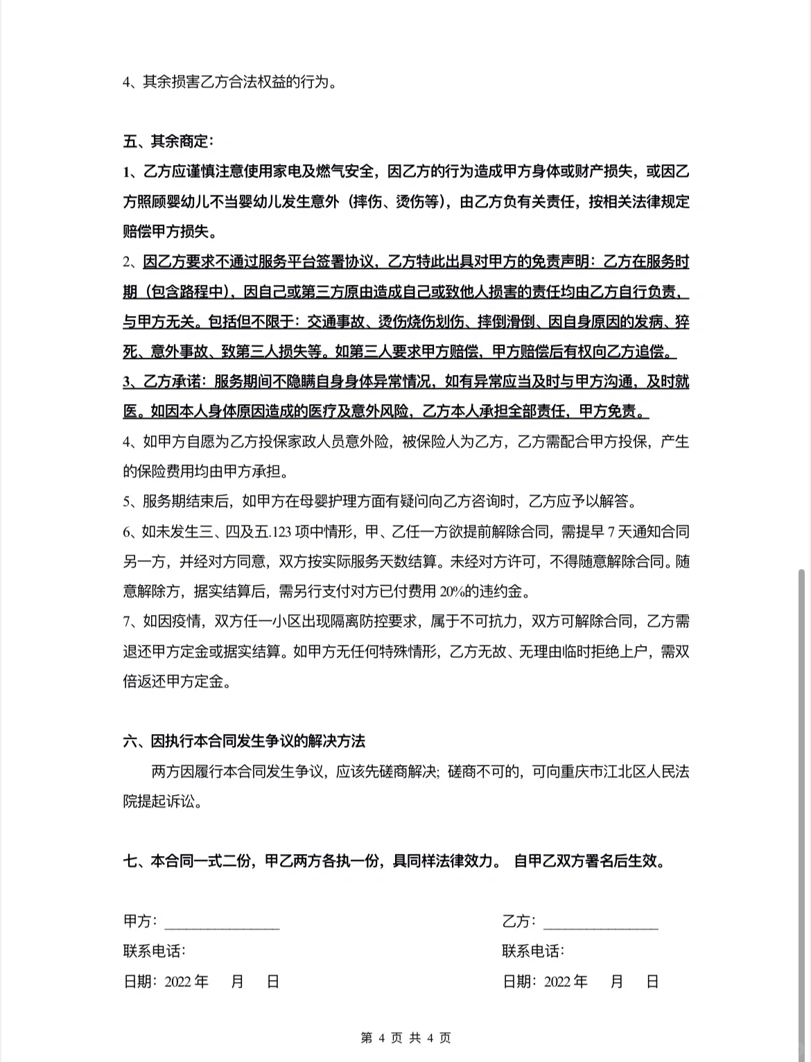 在《月光娇妻服务协议》中赌执业律师的尊严虽然我平时有很强的职业道德(主要是不希望社交媒体平台充斥着浓厚的工作氛围)。 言归正传,由于很多人推荐这个月的月嫂,所以日程安排非常满。现在她独立了,不使用中介平台,我真的很想邀请她,所以我不得不在不使用平台上妥协。她之前提供给我的版本只有一页长,非常简单。作为一名律师,看完之后,我皱起了眉头,眼里充满了风险。我和小姨子讨论了是否可以在不侵犯她的权利的情况下使用她提供的版本,以及保护我的权利。她说我会先写给她复习,然后发给她。她很满意,甚至把它分享到了她的小姨子圈子里。她说以后可以用我的模板,很快就签了合同。 别以为我小题大做。我以前在一起案件中担任过代理人。客户为了节省成本,直接联系家政服务平台推荐的阿姨私下打扫房子。结果,两位阿姨在打扫卫生时被煤气毒死,造成一死一伤。他们的家人向客户提出了人身损害赔偿。虽然法院支持了我们的部分观点,但委托人仍承担70%的过错责任,赔偿近80万元。这种情况不怕一万,就怕意外。许多人不了解在遇到任何问题之前,个人在招聘、提供劳务和协助工作时需要承担的法律风险和责任。因此,我们不在这里进行科普。我们只想说,雇佣私人月嫂,一起吃饭和生活近1-2个月的个人,有许多风险点需要提前避免。如果没有中介机构或家政服务平台提供保护,甲方需要在合同和保险方面双管齐下!最大限度地降低自己的风险,降低未来工作中发生争议(如工资支付)的可能性。 合同中的免责条款并不是免死金牌,许多裁判只是参考了自由裁量因素。因此,预防自身风险的一个重要步骤是为劳动力提供者购买与就业风险相关的保险!(我们下次再谈这个) 然而,合同不可能完美到足以控制所有风险和避免所有不利因素。我的合同也有一些方面不满意(比如付款方式,我个人建议后期付款和结算),因为我是根据月嫂提供的版本添加和修改的。因此,我还需要考虑到对乙方权益的保护,以便乙方能够轻松签署合同。毕竟现在月嫂市场是一个安全的卖方市场,甲方表面上是甲方,但实际上他们的声音很微弱。向乙方提供平等的尊重也是成功签署合同的关键因素。所以那些已经获得协议的人不需要完全照搬,他们可以根据自己的实际情况、产后妇女的需求以及当地的市场情况来调整增值税。 再说一遍,即使你不必依赖我,作为个人护理者,你也必须通过签署良好的协议来注意风险防控。如果你无法控制,就去平台找中介或去产后中心。在出现问题之前不要后悔 尊重原创,未经本人许可擅自复制,侵权必究 如果你还没有关注我,只需给我发一条带有我的VX号码和电子邮件号码的私人信息,让我发送一个电子版本。我很抱歉没有添加陌生人的爱好,我也不愿意把它当作礼物