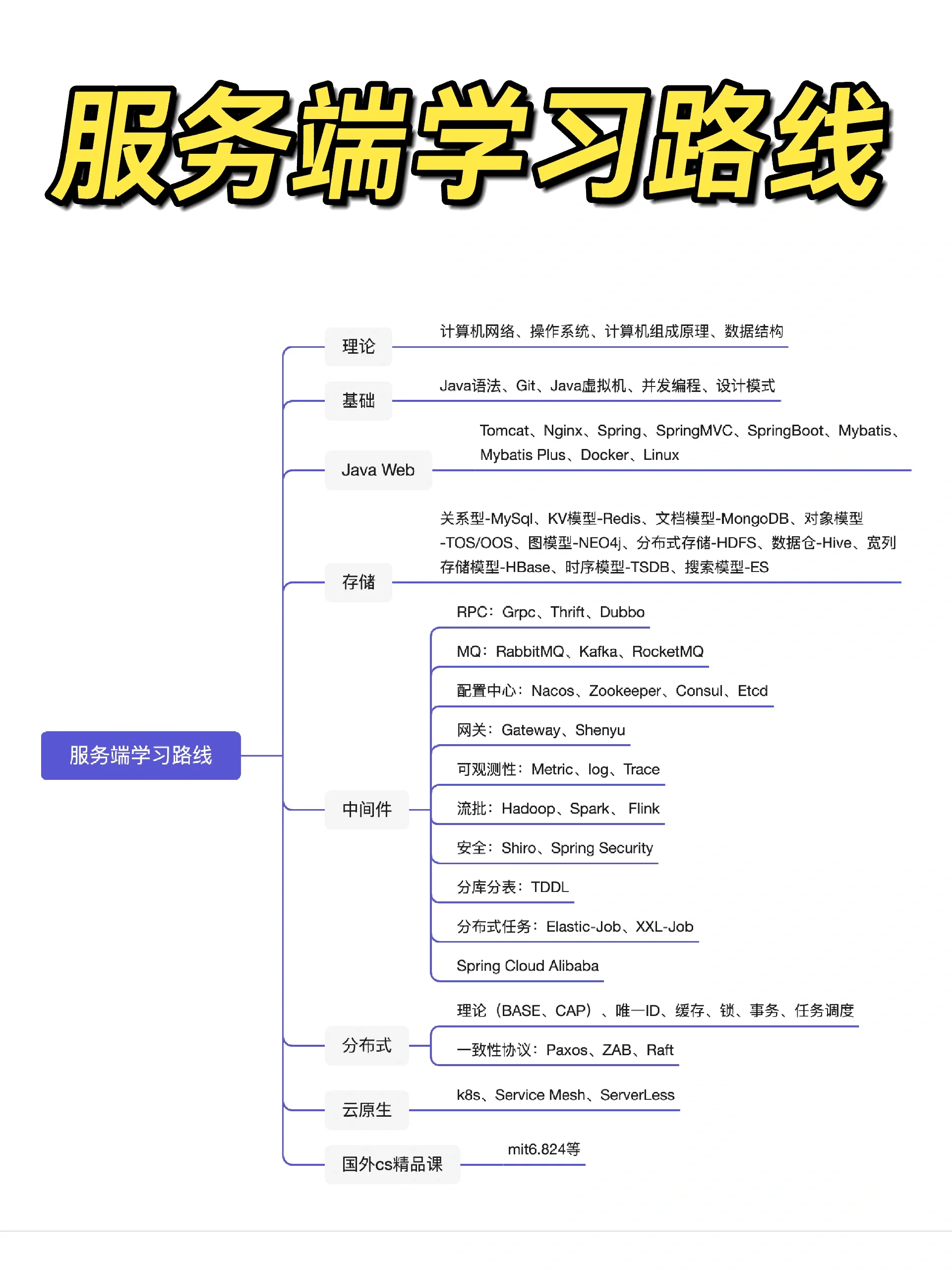 最近,许多大三学生一直在咨询我如何开始使用服务器(后端)。他们简要总结了个人学习路线图供参考。以下是学习〔Party R〕时需要注意的几点 【一个R】理论:408(计算机网络、操作系统、计算机组成、数据结构)可以实现视频通信速度的两倍,重新翻阅书本,填写细节【Sakura R】 [2R]基础知识:您可以首先了解Java语法,因为不同的语言实际上是相互连接的。开始使用Java和连接其他语言更容易(因为Java生态系统中的中间件相对丰富)[Tucao R] 〔Three R〕Java web:目前,SSM基本上已经过时了,但我们可以以两倍的速度完成开发过程。这将有助于理解后续知识。在这个阶段,我们可以简单地将一个小项目部署到服务器上,以加深我们的理解。[啤酒R] 【四个R】学习方法(视频→ 文件→ 源代码):在开始的早期阶段,视频应该是主要关注点。可以对jvm、juc和设计模式等重要内容进行注释,以帮助理解。通常,重要的SSM可以以两倍的速度跳过。在学习数据库和中间件的后期阶段,应熟练使用视频。在一个稍微完整的知识系统之后,可以通过文档博客学习其他类似类型的数据库和中间件。例如,在学习RPC时,可以通过视频学习Dubbo,可以通过博客学习Grpc和其他RPC框架,然后可以读回Dubbo的源代码。这是一个渐进的过程[取消装箱R] [Sakura R]这篇文章可能不够完整和详细。请随时在评论区提出问题并交换意见。[庆典R]