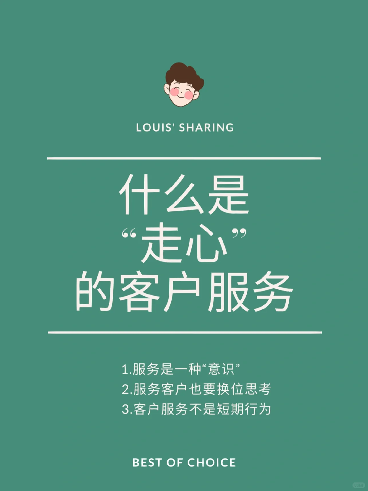 1、 服务是一种“意识” 1.客户服务的前提是能够购买到正品和正品,而不是基于流程和表面; 2.客户服务的建设需要尽可能的纯粹; 3.单纯取悦客户,甚至卑躬屈膝,都不是好的客户服务; 2、 服务客户也需要同理心 1.需要从客户的角度思考,并确定他们需要什么;同样,服务也建立在人格平等的基础上 2、服务就是一切,以“一切为了客户,客户至上”为出发点; 3.客户认可是服务的最终目标; 3、 客户服务不是短期行为 1.深度客户服务需要时间来沉浸其中 2.我们需要用朋友的心态与客户建立信任; 3.客户需要的是体验感和对细节的关注; 例如,如果你自己给客户发生日快乐信息,假设你知道客户父母或孩子的生日,那么当天发生日快乐消息会给客户带来不同的、更深层次的服务体验吗