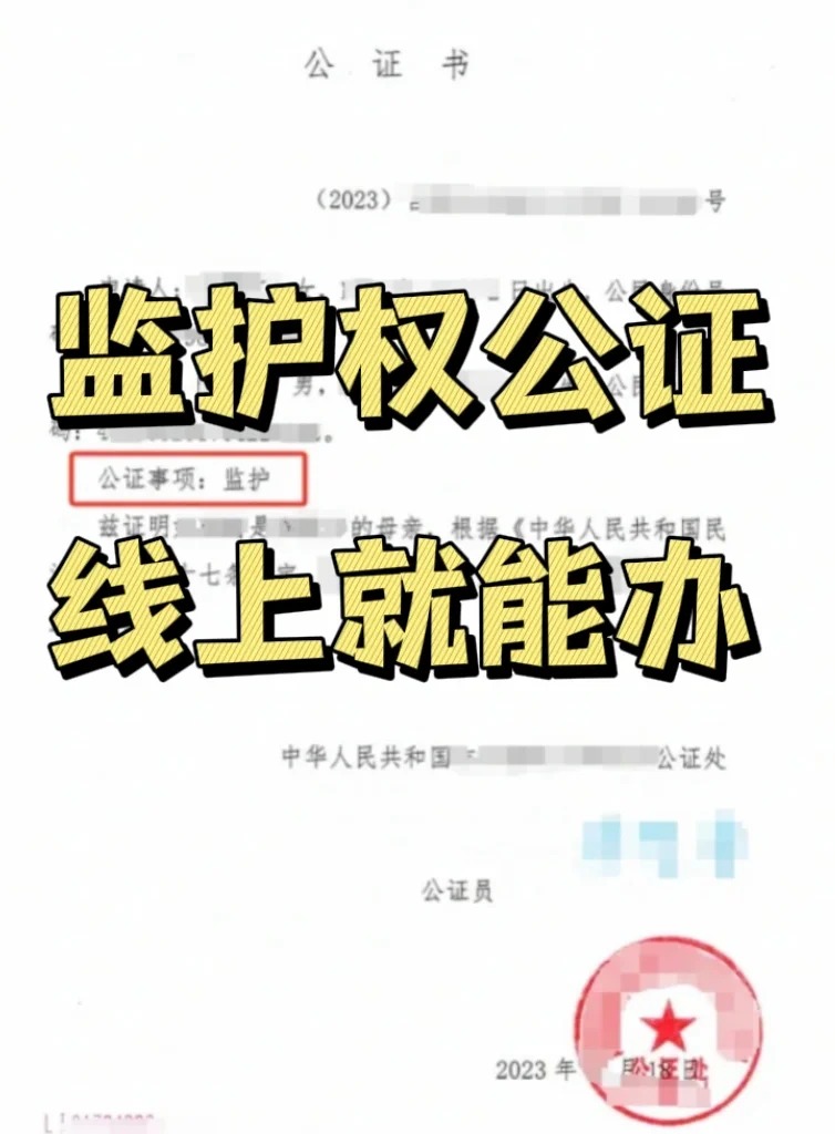 一般是离婚后父母一方带孩子出国的时候可能会用到这个事项的公证! 监护公证需要提供的材料如下: 父母一方的结婚证+离婚协议拍照 孩子的出生证明拍照 孩子和父母的身份证户口本拍照 线上办理,提供上面资料的原件的拍照就可以了,3个工作日出公证,如需要海牙认证大概7个工作日出证。可加急! 需要注意的是证词只能写谁是谁的监护权,不能提现唯一二字! 也要区别于不随行同意书的签名公证!具体看证词。 也可以联系我协助您处理