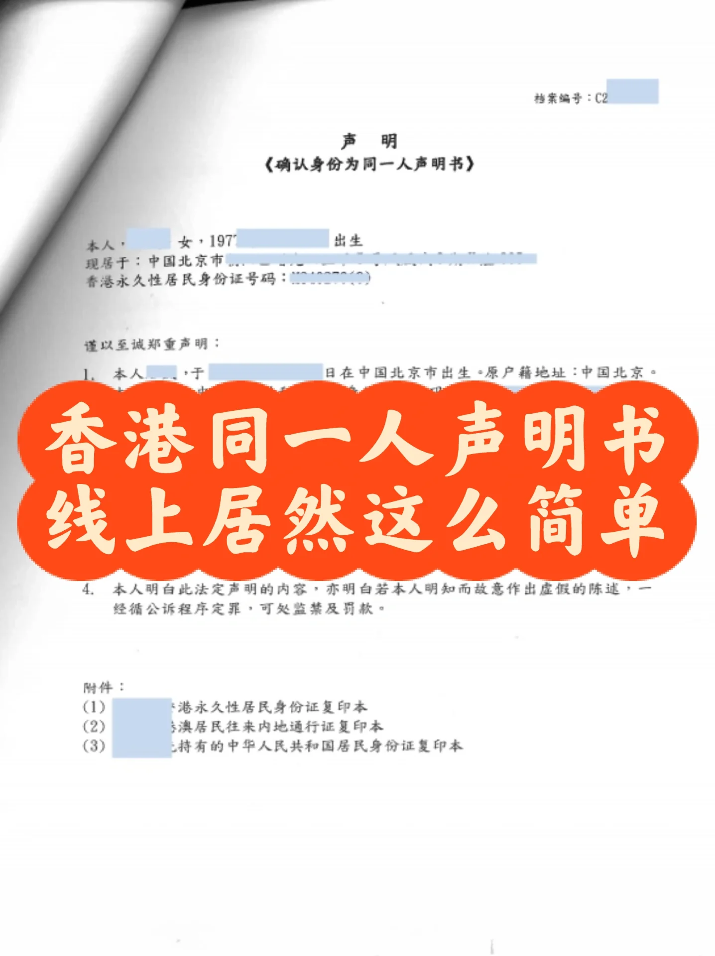 中国内地人士在取得香港身份证后,可能需要办理以内地身份购买的物业或其他事宜。根据相关规定,需要申请同一人申报表,以证明“本人具有内地身份”和“本人具有香港身份”为同一人。 什么是“同一人公证” 所谓“同一人公证”,其实就是“同一个人的身份声明”。由香港和中国委托公证机构出具的公证文件,证明香港身份证和《香港澳门居民来往内地通行证》上的人与内地身份证上的人是同一人。 在理解了什么是“同一人公证”之后,让我举一个谁需要申请“同一个人公证”的例子。 例如,A先生现在已经申请了香港永久居留权,并获得了返回许可,但他在广州有一处房产。他计划将该地产的所有权从“具有大陆身份的何”改为“具有香港身份的何。此时,他需要申请“同人公证”,然后到广州的不动产登记中心办理相关手续,办理过户。 由同一个人办理公证复杂吗需要什么信息 同一人公证需要到律师事务所办理。在处理此事时,当事人需要在授权公证人面前签署一份声明,大致应为“我现在和以前一样了”。 公证员在公证员的见证和签字后,还需要将公证文件提交给中国法律服务(香港)有限公司(以下简称“中法”)盖章和传递。该文件须经中法双方加盖“传输专用章”后方可在中国内地进行处理。 必填信息 1.内地身份证原件 2、原户籍注销凭证 3.香港现行身份证 4.现行香港同学会通行证 两种处理方法: 香港律师事务所公证 您可以选择到香港有中国公证人的律师事务所办理,当事人在办理时需要在授权公证人面前签署声明,并对同一人的声明进行公证。 在中国大陆的公证处办理 为中国内地和香港准备身份证件扫描件和其他材料,起草同一人的声明,并通过与内地公证员的在线视频对自己的同一人声明进行公证。