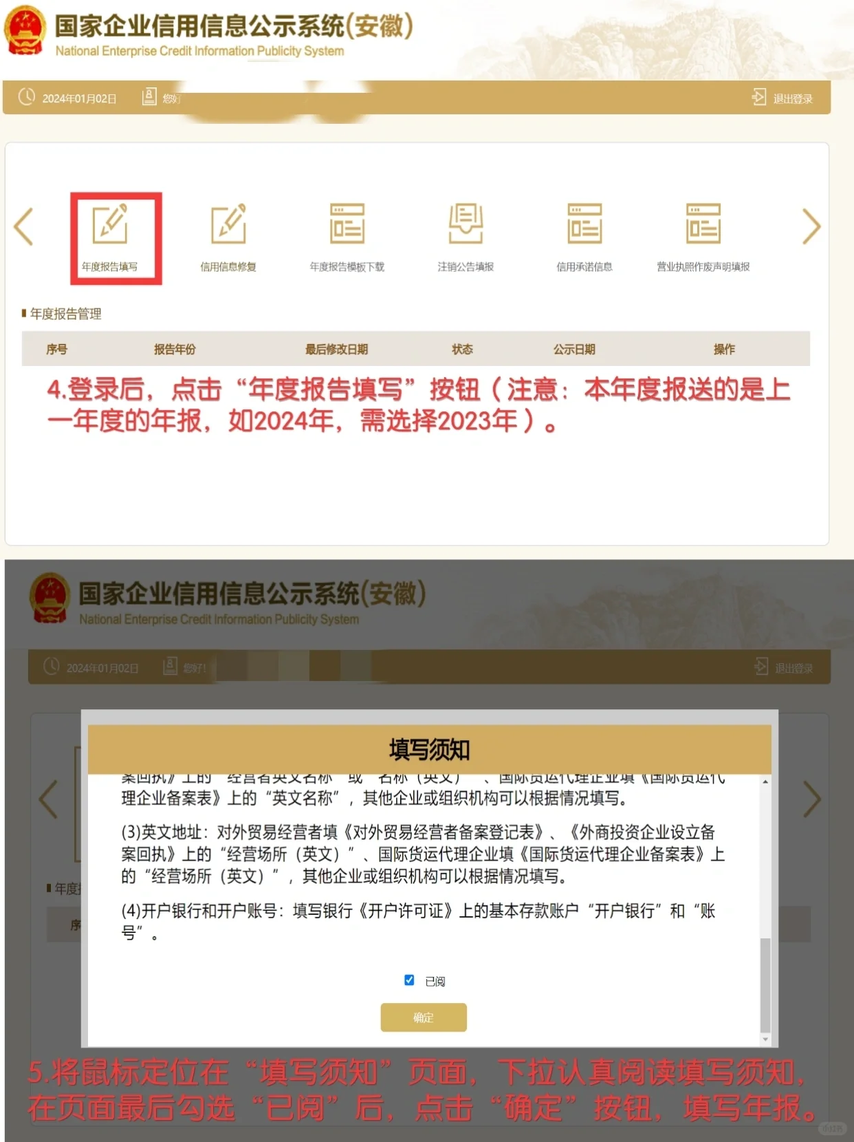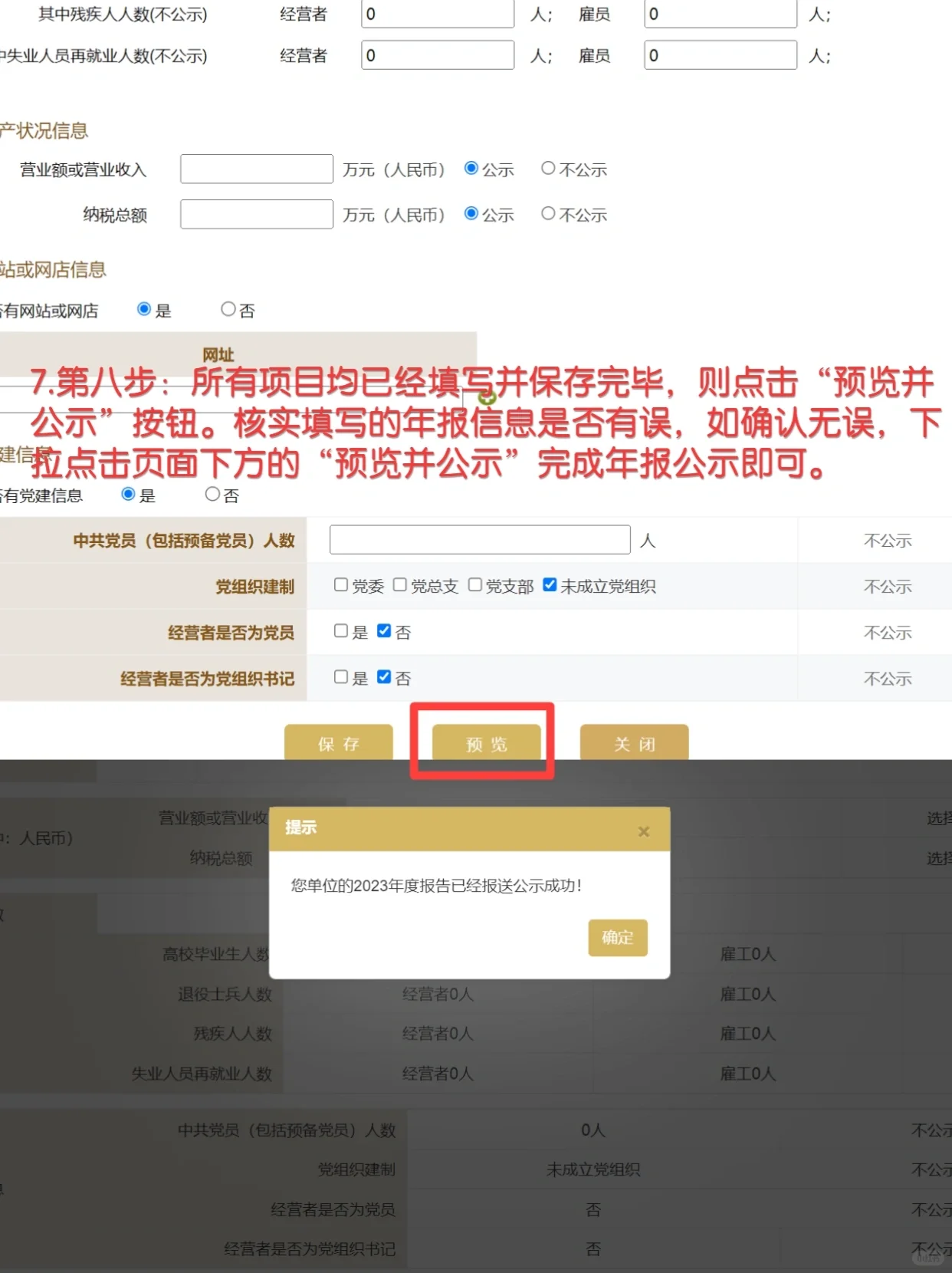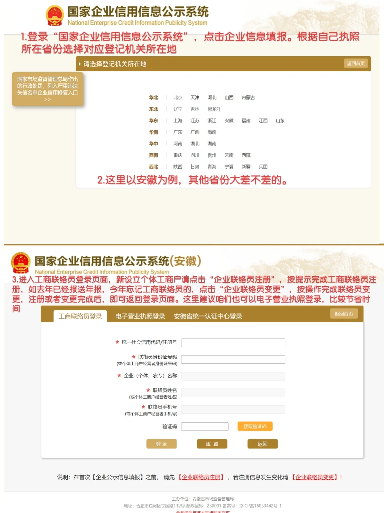 是时候再次提交年度报告了。记得在每年的1月1日至6月30日提交上一年度的企业年度报告!这几天,一位客户来找我,问我:“我收到了准备年报需要支付的信息,看起来不错”。请记住,提交年度报告的过程非常简单,只需几分钟即可完成。为了防止更多的人上当受骗,我花了一晚上的时间组织了这篇关于个体工商户年报的教程,希望能给大家带来帮助[R党] 打开浏览器,登录“全国企业信用信息公示系统”,点击“企业信息填报”,根据您的执照所在省份选择相应的登记机关所在地。 转到企业联络官的登录页面。对于新设立的个体工商户,请点击“企业联络员登记”,按照提示完成企业联络员的登记。如果您去年已经提交了年度报告,而忘记了今年的企业联络官,请点击“企业联络官变更”并按照说明完成联络官的变更。注册或更改完成后,您可以返回登录页面。我们建议我们也可以使用电子营业执照登录,这也节省了时间。 登录后,点击“年报填报”按钮(注意当前年报来自上一年度,例如2024,您需要选择2023)。 将鼠标放在“填表须知”页面上,仔细阅读“填表说明”下拉菜单,选中页面上的“阅读”,然后单击“确定”按钮。 根据实际情况填写页面上的每一项信息,如果没有,请填写0。 如果所有项目都已填写并保存,请单击“预览和发布”按钮。验证提供的信息是否正确。如果确认无误,点击页面底部的“预览发布”,即可完成年报发布。如果有任何错误,您可以点击返回进行修改并重新提交以供公告!这里的整个过程都结束了,不是很方便吗