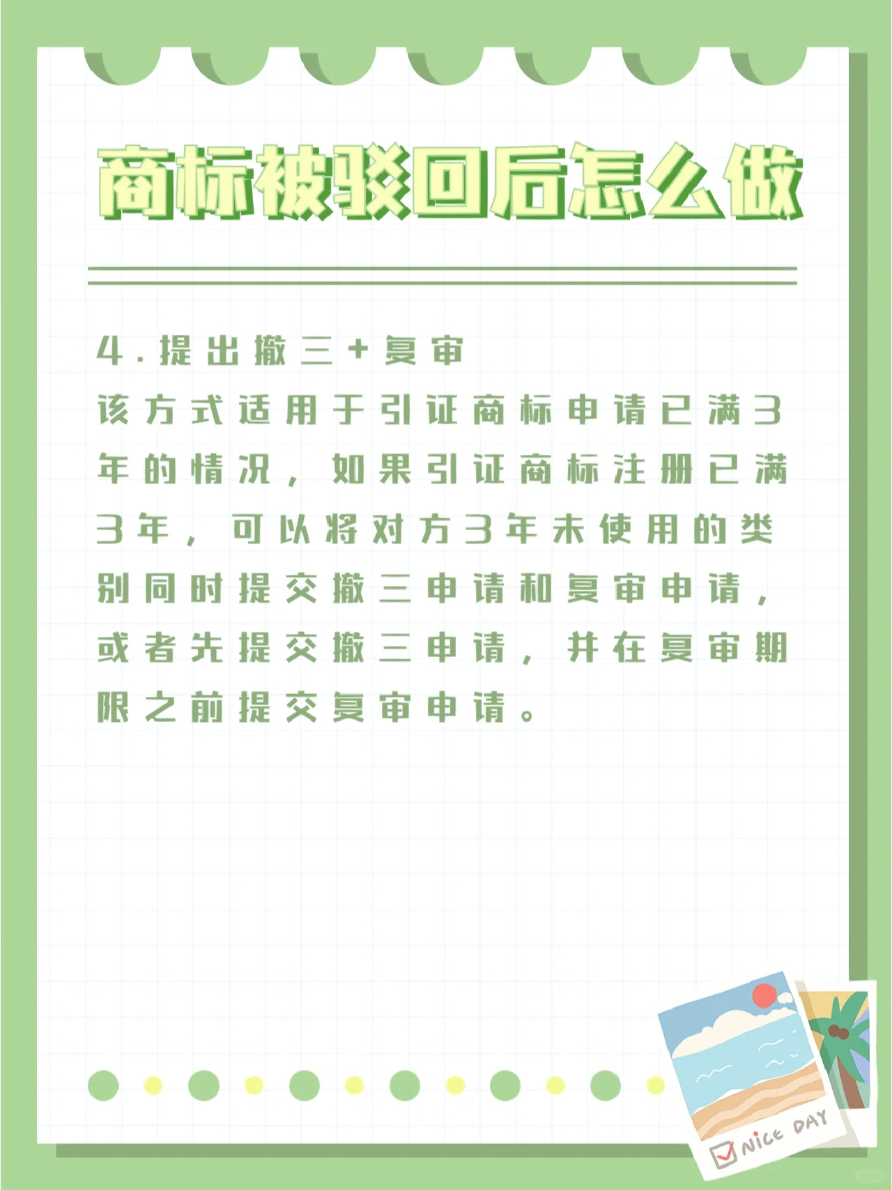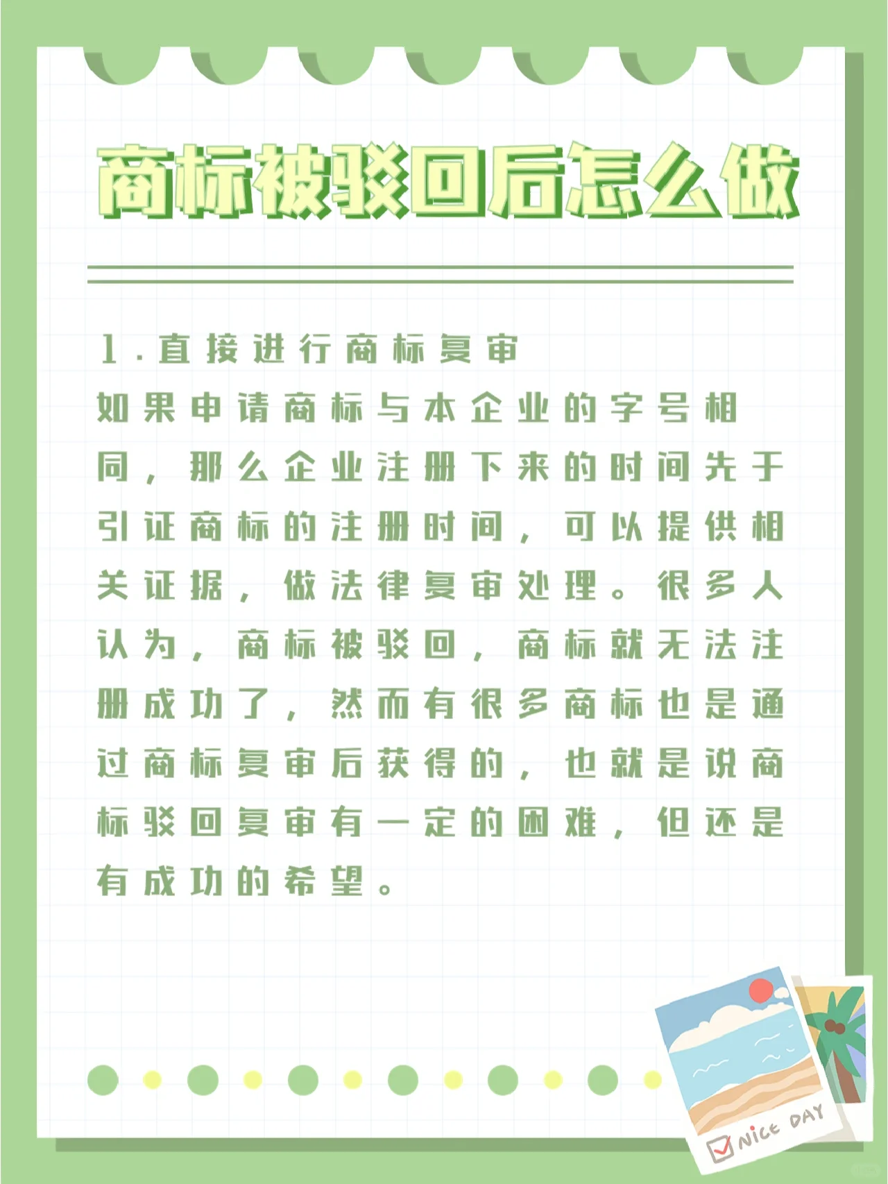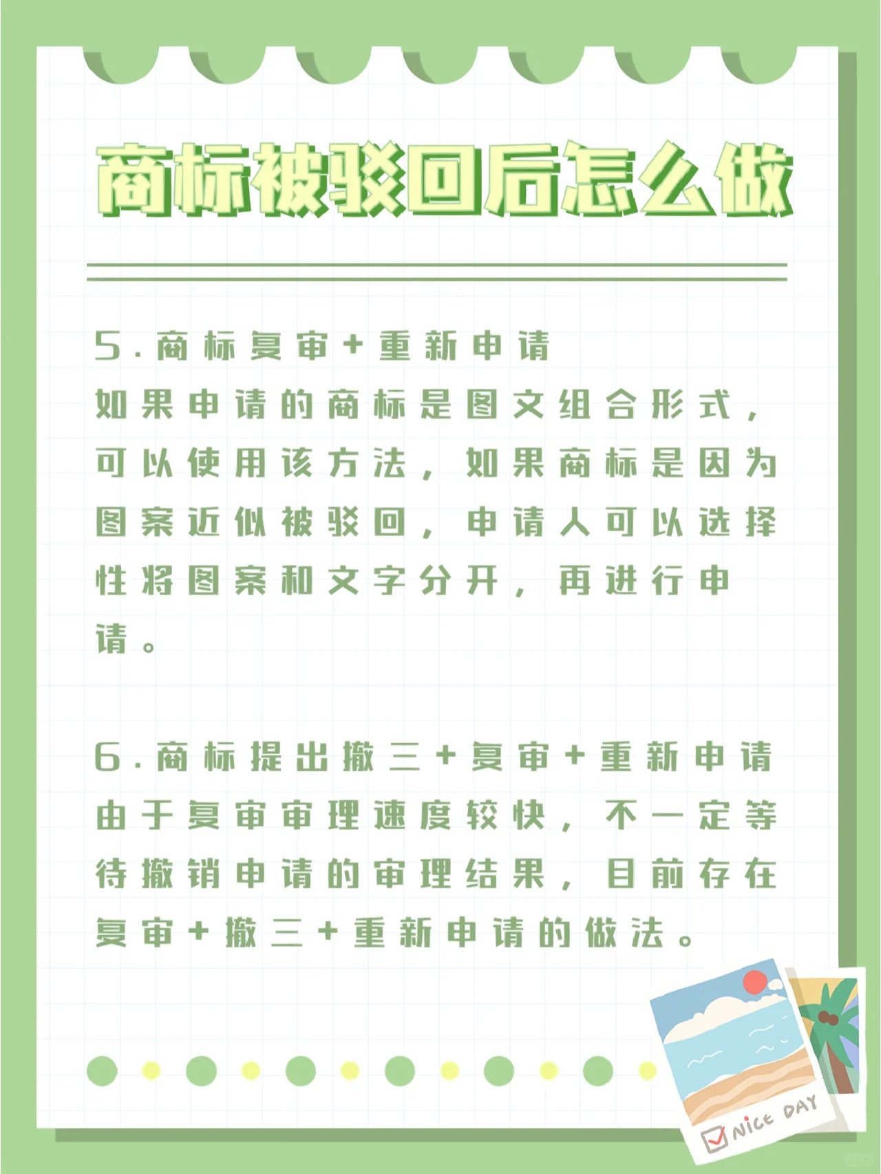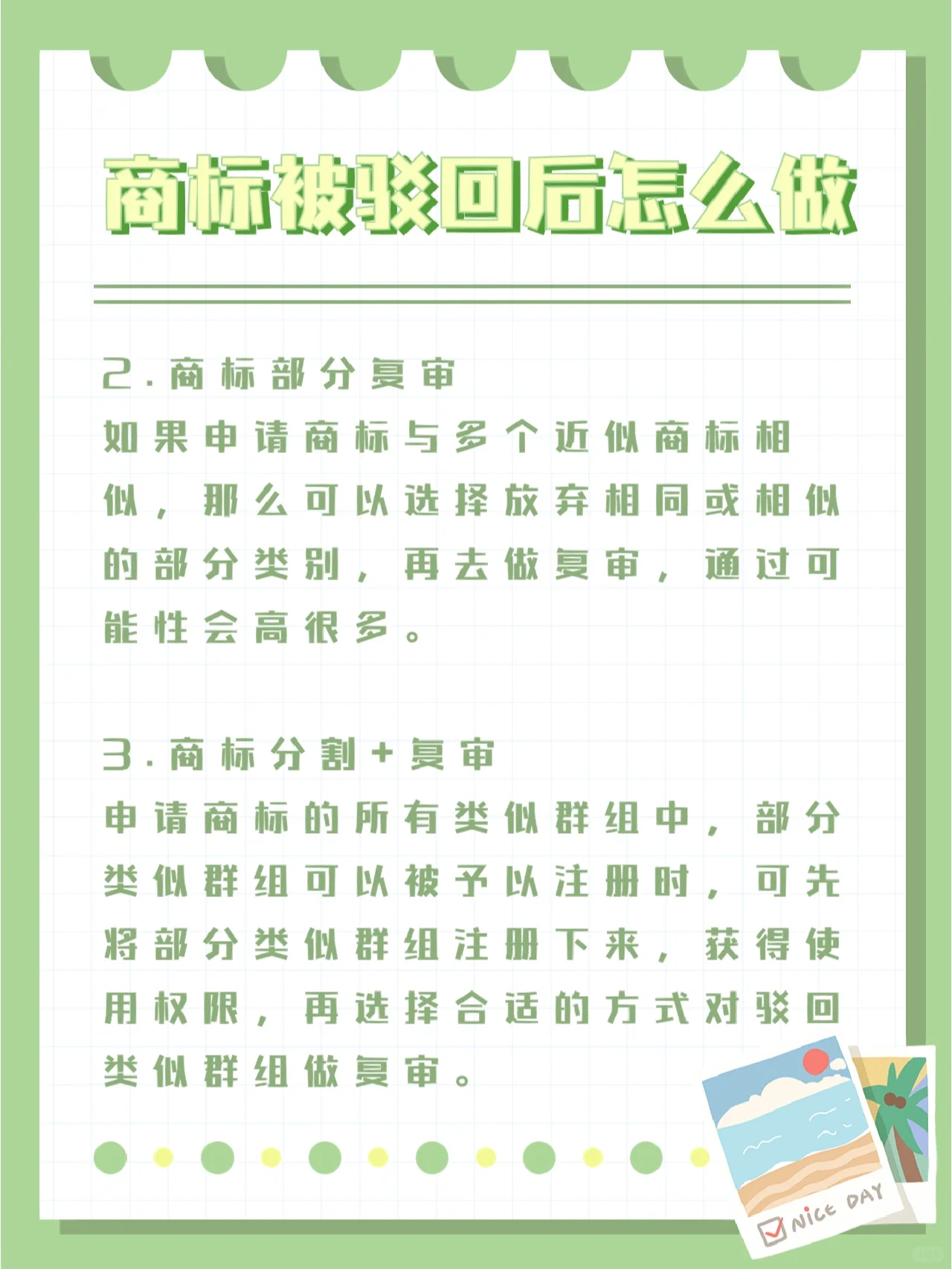 有两种类型的商标拒绝: 一种是完全拒绝,是指拒绝整个商标的所有商品或服务。 另一种类型是部分拒绝,指的是拒绝与商品或服务有关的某些项目。 我们能否通过商标申请是无法控制的。我们应该做的不是放弃注册,而是进行商标驳回审查。