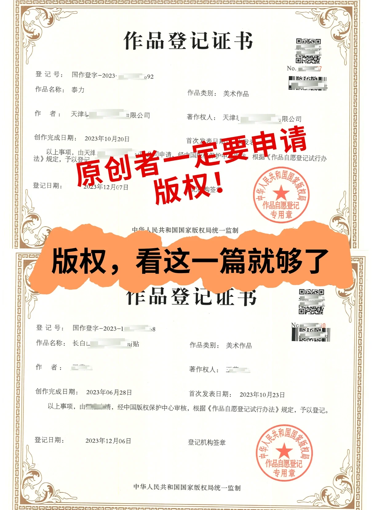 原创者必须有版权意识 无论你是否有粉丝,都要记得为你的原创作品申请版权。如果将来发生任何争议,此证书也可以作为依据之一 版权注册流程是什么 申请人提交注册申请材料-注册机构核实并收到材料-通知付款-申请人支付注册费-注册机构受理申请-审查-制作并颁发注册证书-并宣布。 著作权登记的类型包括书面作品、口头作品、音乐作品、戏剧作品、舞蹈作品、杂技作品、艺术作品、建筑作品、摄影作品、电影作品、平面作品、模型作品、民间文艺作品等。 版权登记的功能是什么 1.它可以帮助版权所有者确定和澄清权利的归属 创作作品的过程是复杂的,如委托创作、公司作品和官方作品,这需要法律确认程序来减少相关的权利纠纷。 2.当著作权人受到侵犯,需要主张权利时,登记的物品可以作为权利归属的初步证明 在诉讼中,原告往往需要提供所有权证据,如原稿、原始文件、创作行为证明以及转让或许可合同。 3.版权登记还可以保护权利持有人的相关经济利益 在获得授权时,用户需要对方提供相应的证明,以降低经济风险。