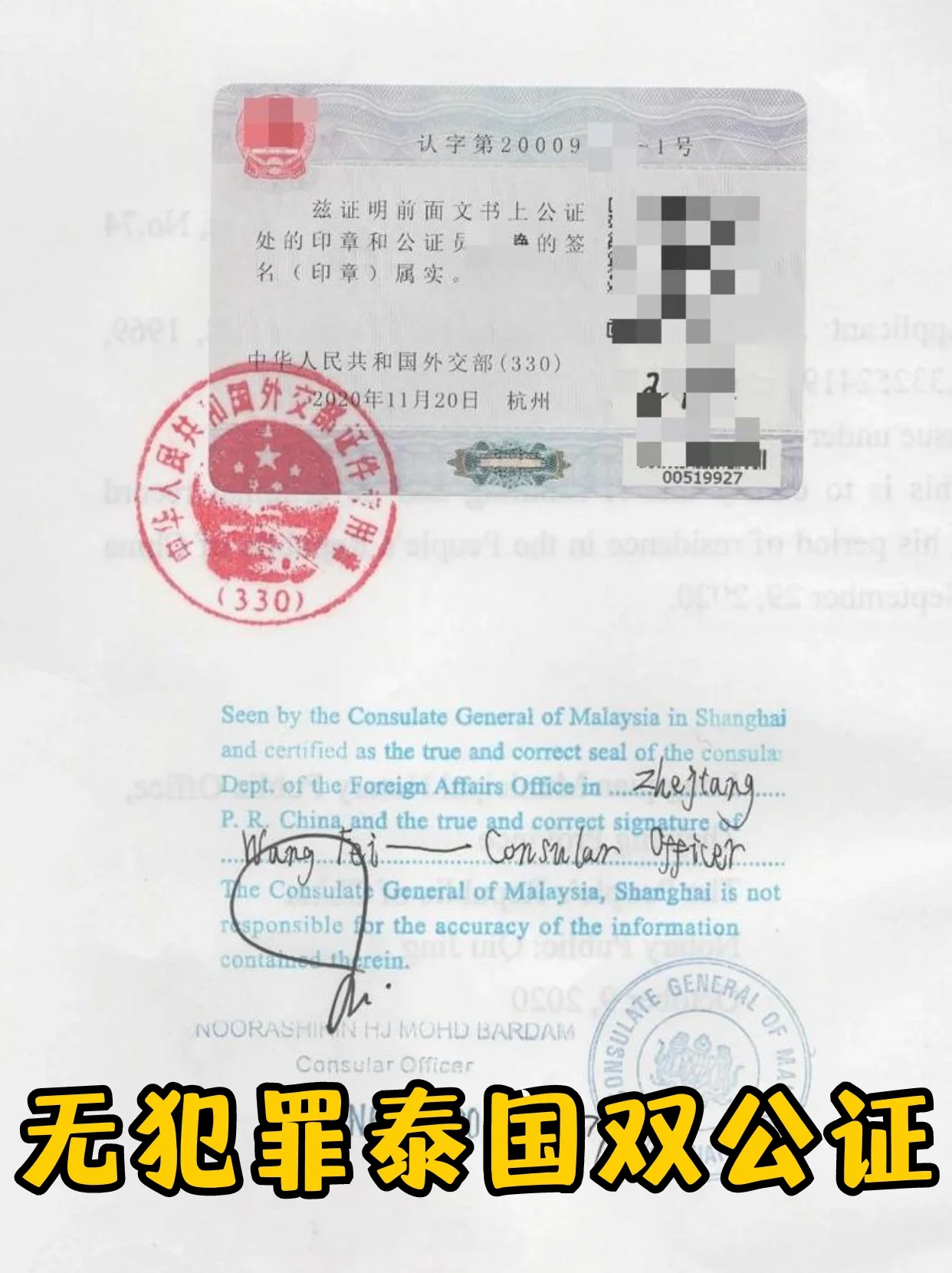 想在泰国留学的人都知道,他们需要准备一份无犯罪记录公证和双重认证的国内证书。那么他们该怎么办呢让我们一起来看一看! 无犯罪证明 离线发行方式: 一般需要到户籍所在地派出所办理。如果一个人在外地,需要到外地申请,他或她通常需要准备一年以上的临时居住证,当地公安机关才会受理。 网上发行方式: 各省基本上都有自己的网上发行渠道, 北京:北京警察小程序,点击首页无犯罪证明 上海:随身携带app,直接搜索无犯罪记录证明,点击【网上发证】 广州:广东省事小程序,点击“家庭保障”,向下滚动即可在其他服务中找到“无犯罪证明” 厦门:登录iXiamen,搜索无犯罪记录证明 注释: 无犯罪记录的证明应该从出生到现在颁发,以避免以后需要重新申请和拖延时间 无犯罪证明公证 需要准备的材料: 身份证的积极方面 家居/口碑首页家居主页个人主页 无犯罪证明 公证处要求的其他辅助证明材料 离线公证: 你需要带材料到户籍地的公证处,你需要找到有资格进行外国公证的人,不是每个人都可以 在线公证: 您不需要亲自到场,也不需要原始文件,只需提供上述材料的扫描件即可 注释: 在对电影进行公证之前,有必要确定翻译所需的语言。最好找一家有资质的翻译公司或公证处进行翻译,因为公证文件对翻译有特定的格式要求,以避免在不符合要求的情况下被要求重做。 无犯罪证明双重认证: 在泰国的双重认证实际上是指拿着经过公证的证书到中国外交部或各省级外事办公室进行认证(也称为单一认证),然后到泰国驻华使领馆进行认证(又称双重认证)。 泰国大使馆双重认证要求: 公证证书需要两份,大使馆只收取一份公证费。 公证证书需要泰语或英语翻译。 山东省出具的公证证书需经泰国驻青岛总领事馆认证