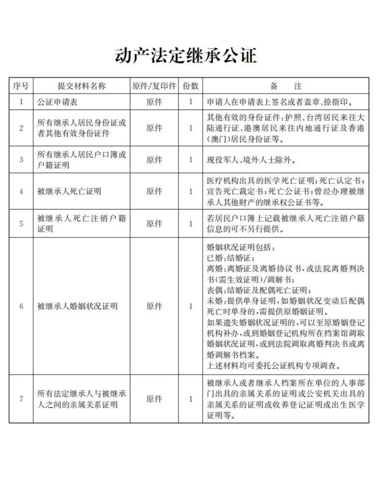 可以公证和继承的动产类型: 如果涉及银行存款、债券或国库券,应提供银行存折、银行存款证明或债券或国库券证明; 对于股票和资金余额,应提供股东账户卡、资金卡、对账表和证券公司发布的证券清单; 涉及公司股权或股东资格的,提供营业执照、公司章程、在职证明、验资报告或经审计的财务报表; 涉及机动车的,提供机动车驾驶证和车辆登记证; 如涉及住房公积金,提供住房公积金中心提供的住房公积金余额清单; 涉及知识产权的,提供知识产权证书; 涉及债权的,提供借款合同转让凭证等债权凭证; 其他新型动产证书。清晰准确,可与其他材料进行验证。 公证遗产的好处: ]法律效力和权限 继承公证是由国家公证机构出具的具有法律效力的证明文件,具有较高的权威性和公信力。它可以有效地确认继承人的身份和继承权,为继承人提供法律保护。 简化程序 继承公证可以简化继承过程中繁琐的程序。在办理继承时,继承人通常需要提供一系列证明材料,经过公证的继承权证明文件可以直接作为有效凭证,减少不必要的麻烦。 当然,如果无法通过公证处理遗产,也可以向律师寻求帮助并提起诉讼寻求解决。