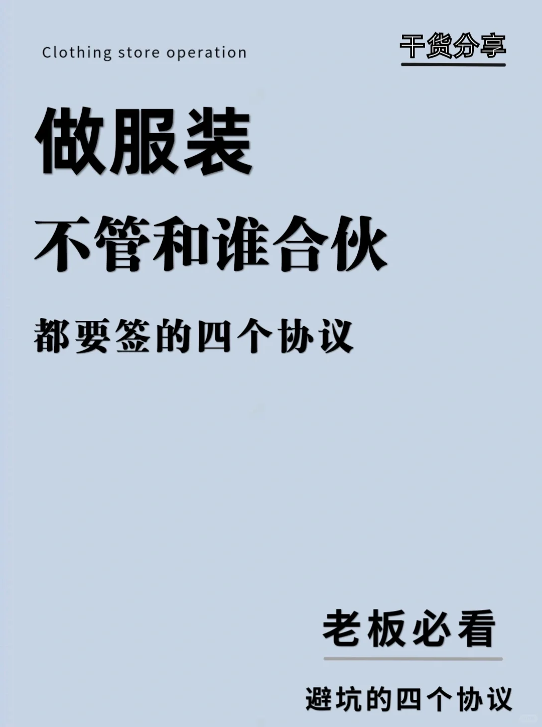 必须与任何人及其合作伙伴签署的四项协议 : 1.退出条款 这也是一个在合作时容易被忽视的条款; 我和亲朋好友喝了一杯, 别人只是给钱吗调用; 在许多情况下,人们会受到面子的阻碍, 不愿意触及这个底线问题; 但正是因为你忽略了退出条款, 当你公司的股东将来要退出时,将没有规则或计划可遵循, 我们只能把事情搞得一团糟, 为了尴尬地退出,甚至为了生存,一个人不能寻求死亡; 如何写出口条款 锁定期规定,任何股东不得在三年或五年内退出。 退出条件:如果股东有过错,退出将导致股权被没收, 股东无过错退出的,设定回购资格; 2.出资比例和持股比例条款: 这不像是花了多少钱它能持有多少股份, 我们的出资比例可以与持股比例完全不同,可以根据公司发展的不同阶段进行动态调整; 3.决策比例 我持有公司30%的股份, 我只想拥有30%的决策权吗 这不是关于付钱吗如果有很多,他们一定是公司的老板, 并不是说那些持有更多股份的人必须说了算, 谁拥有多少股份, 有多少表决权可以设置为相同的股份但不同的权利; 4.股息率条款 持有公司50%以下股权的所有股东必须在贵公司章程中包含股息条款, 如果公司章程没有规定公司何时解散, 如何划分,你说的根本不算数; 仅仅依靠大股东的个人情绪, 如果我今天高兴,我会给你一点, 如果你明天不开心,我不会给你任何分数; 因此,在开始合作时,有必要签署四项协议: 退出协议 出资比例协议 决策比例协议 分红比例协议