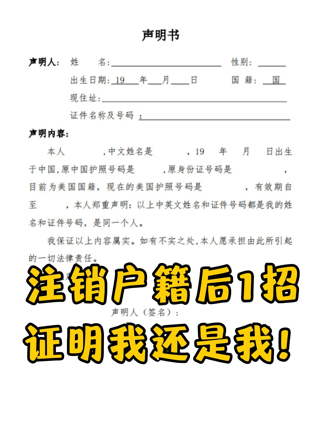 海外华人注销户籍后必备|同一人声明书公证