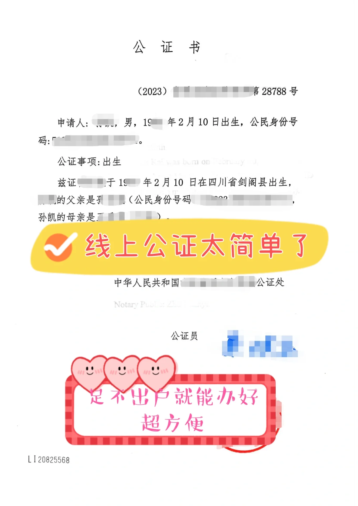 哪些公证可以线上办理: 在线公证适用的范围非常广泛,包括一般的委托公证(例如房产委托公证、办理贷款委托公证、委托设立或注销公司等)、一般涉外公证(例如出生公证、身份证公证等)、银行赋强公证、夫妻协议公证、离婚变更或协议公证等。 遗嘱、遗赠扶养协议、认领亲子、收养关系、解除收养关系、生存状况等与人身密切关系的公证事项,应当由本人亲自申办。(简单一句话来说就是特别容易产生纠纷的公证都是需要涉及所有人亲自取公证处现场签字确认办理的) 线上公证优势在哪里 简单在线公证可以实现"零接触""零跑腿",不需要反复前往公证处递交材料 专业!!一对一分析客户情况可以为客户提供最好的方案 透明!!办理进度随时反馈! 轻松!无需本人亲自到场,通过线上视频的方式超越空间和时间的局限,随时随地可操作,方便快捷 迅速!!在线操作之后可当场审核,1-2个工作日即可出证!一对一分析客户情况可以为客户提供 !办理进度随时反馈 正规!支持全国办理,不限地区、不限户籍,公证书上的二维码也都支持在线查验。