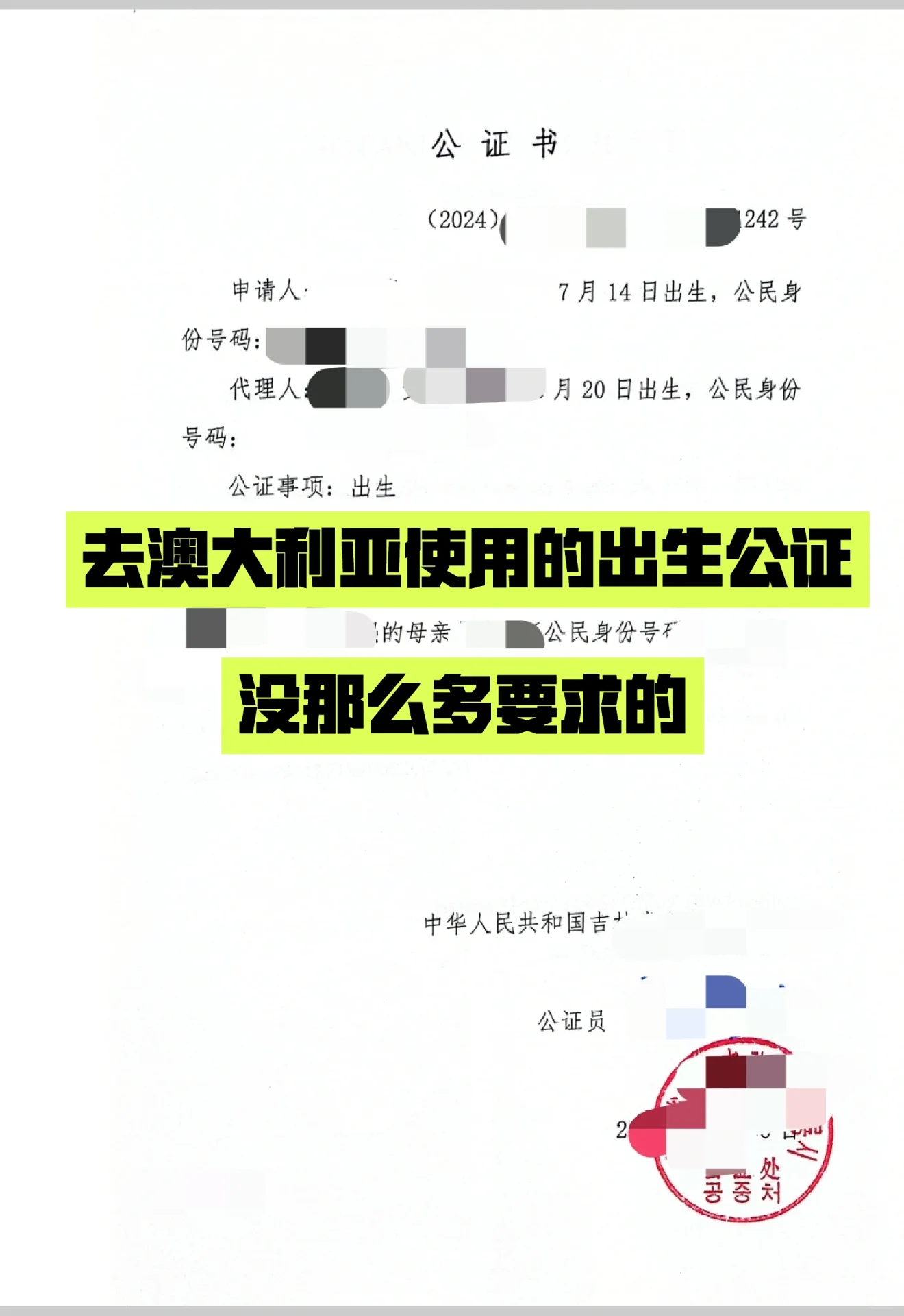 澳大利亚年年吸引着大量的留学生以及务工者前往,原因不仅是环境优美,对人友好等原因,还因为在申请签证时需要递交的出生公证没有那么多要求,大大减少的制作难度而引以为傲。那是哪些地方方便呢 首先材料上需要准备 ①申请人身份证+户口本 ②申请人父母的身份证+户口本 ③申请人父母的婚姻证明(结婚或者离婚证、离婚协议) ④出生医学证明(或独生子女证或老式出生证) 这里不像去美国使用的那样需要贴照片上去,但是你想贴也是可以的,需要确认的是贴完是否还能正常使用一般是贴了也没关系,不贴也能用 其次澳大利亚采用单号公证,即 公证书封面 中文证词页 英文证词页 公证书尾页 四页组成一个完整的公证书 这里不像美国使用的那样需要做双号公证书,即需要多做一页译文与原文相符的证词页。这点千万注意,一定不能做错,做错了就用不了了 人在国外不方便自己办理的,可以在网上提交材料照片或者扫描件进行办理!