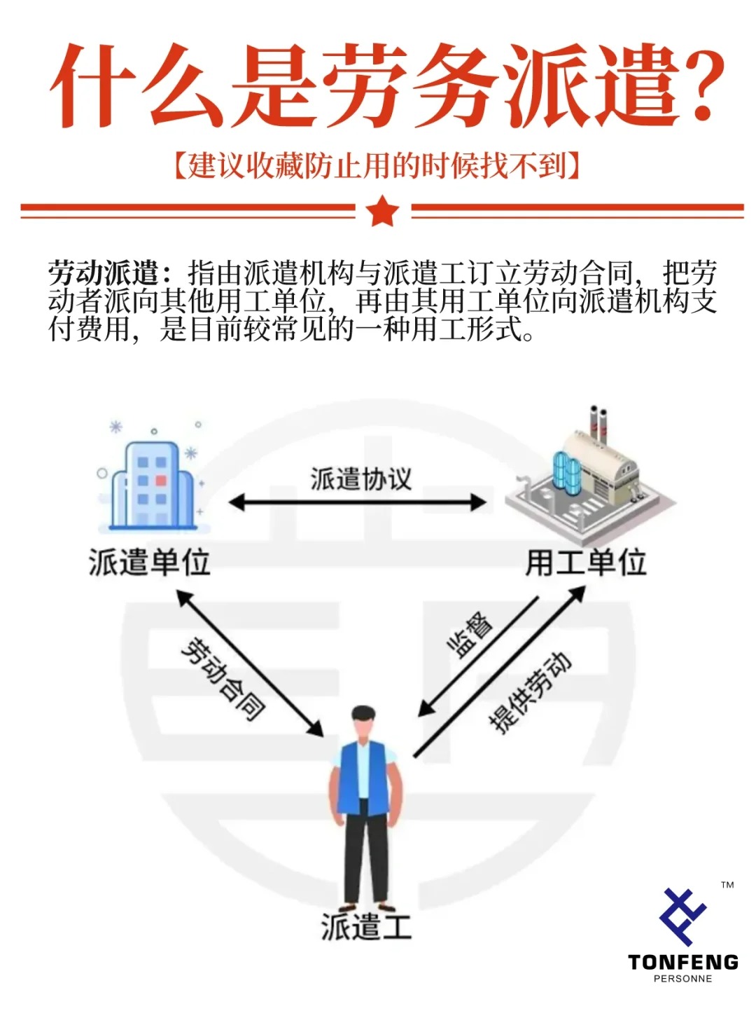 劳务派遣的定义: 是一种用工形式,用工单位与劳务派遣单位签订劳务派遣协议,劳务派遣单位派遣人员到用 工单位从事用工单位安排的工作内容 劳务派遣单位的设立经营劳务派遣业务应当具备下列条件: (一)注册资本不得少于人民币二百万元; (二)有与开展业务相适应的固定的经营场所和设施; (三)有符合法律、行政法规规定的劳务派遣管理制度; (四)法律、行政法规规定的其他条件。 经营劳务派遣业务,应当向劳动行政部门依法申请行政许可;经许可的,依法办理相应的公 司登记。未经许可,任何单位和个人不得经营劳务派遣业务。 是指劳务派遣单位与被派遣劳动者建立劳动关系后,将其派遣至用工单位,从事指定工作的一种用工形式。其核心特点在于“派遣”二字,即劳动力的使用权与所有权分离,用工单位只负责使用劳动力,而劳动关系的建立、管理、工资发放等由派遣单位负责。这种模式灵活性强,便于企业根据业务需求调整人力配置。 劳务派遣用工方式灵活,用工时间可长可短,尤其适用于季节性用工或短期临时用工。 企业可以根据自身业务量的增减来调整劳务派遣人员,使员工的招聘和退回更加方便灵活。 降低人事管理成本: 劳务派遣可以帮助企业摆脱繁琐的人事管理问题,如签订劳动合同、工资管理、社会保险等。 这减少了企业在这些方面的投入,降低了人事管理成本。 提高用工效率: 劳务派遣机构负责招聘员工,企业无需再投入大量时间和资源进行招聘,从而提高了用工效率。 同时,劳务派遣员工经过专业培训,能够快速适应岗位需求,进一步提高了工作效率。 降低招工招聘费用: 企业采用劳务派遣用工方式,无需制定招工方案和计划,也无需自己发布招工广告。 所有招聘事宜均由劳务派遣机构办理,降低了企业的招工招聘费用。 提高劳动生产率: 劳务派遣机构会按照企业的工种岗位技能要求进行派遣,有相当一部分是熟练工。 这可以减少培训、实习的过程,提高劳动生产率。 避免劳动合同争议: 由于用人单位不直接与劳动者签订劳动合同,因此不存在劳动合同履行中的种种纠纷和争议问题。 降低企业风险: 劳务派遣单位与被派员工存在劳动关系,若被派员工违反了用人单位的规章制度或给用人单位造成了经济损失,由劳务派遣机构承担赔偿责任。 这降低了企业的法律风险和经济损失风险。 完善劳动者社会保障: 劳务派遣单位可以为劳动者提供完善的社会保障服务,解决劳动者的后顾之忧。 促进就业: 劳务派遣单位通过招聘不同职位的员工,促进了我国的就业市场。