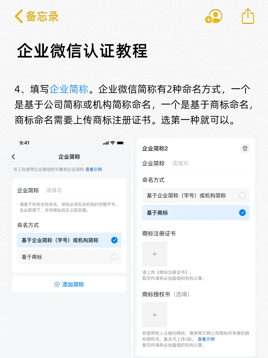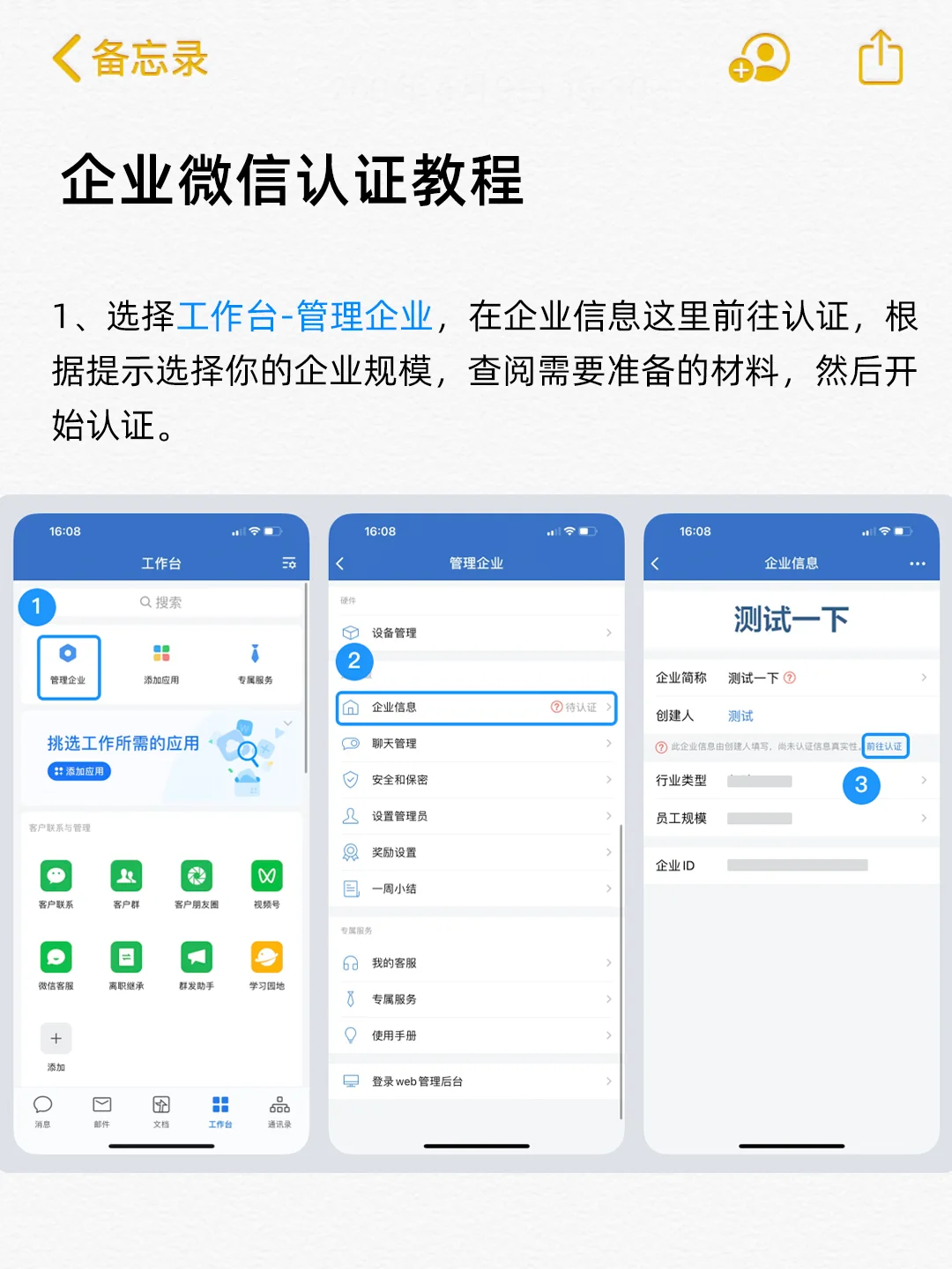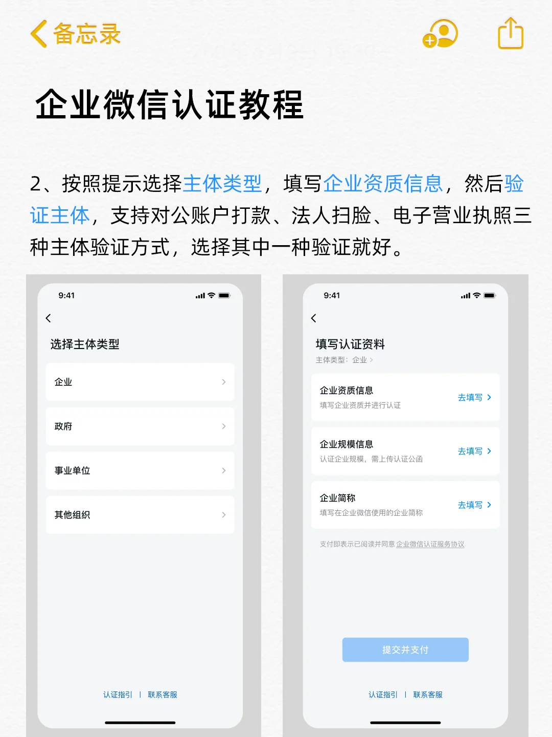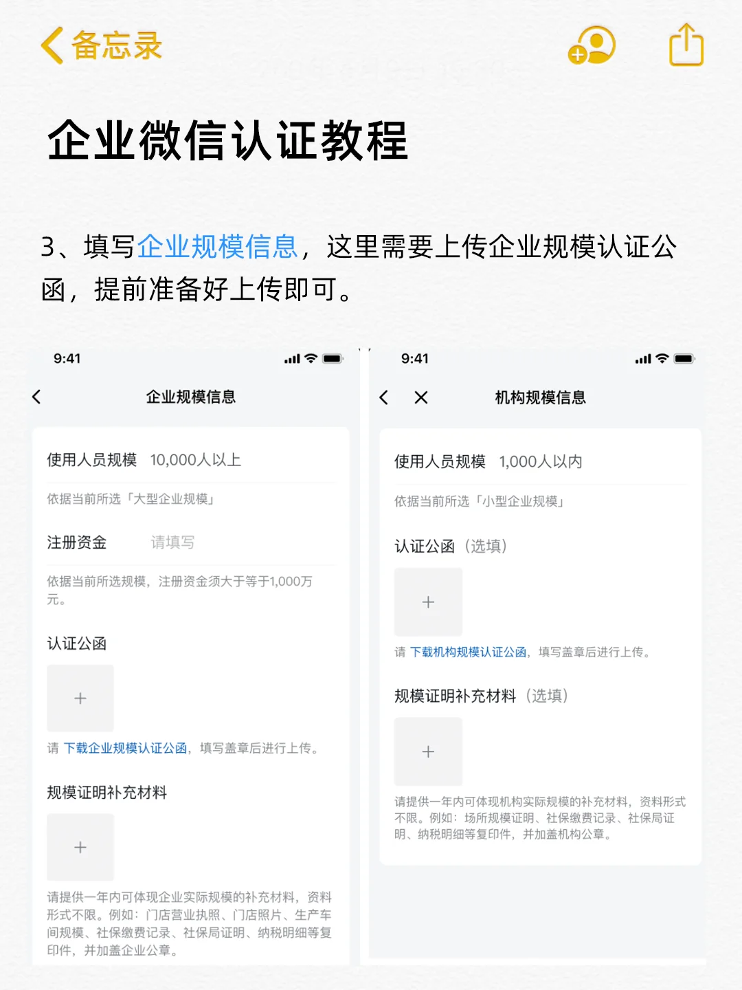 建议企业主注册企业微信,并尽快完成微信认证。经过身份验证后,有许多功能性权利和利益,应用范围更广,安全系数更高。是企业和员工管理的重要一步,也是构建基于微信生态的私域流量池、进行客户运营管理的核心环节 首先,需要准备一些材料,可以根据图3中的表格提供相应的材料。然后用手机登录奇伟并开始身份验证: 选择Workbench-Manage Enterprise,转到Enterprise Information部分进行认证,按照提示选择您的企业规模,审查需要准备的材料,并确保提前准备好这些材料,以避免重复提交修改而浪费时间。 启动身份验证,按照提示选择实体类型,填写企业资质信息,验证实体,然后填写操作员信息。请注意,在绑定之前,操作员必须完成个人实名认证。 填写企业规模信息。在这里,您需要上传企业规模认证信。提前准备好并上传。 填写公司缩写。 提交并支付认证审查费。1-1000人的企业规模收费为300元/次,每次有效期为一年。付款后,等待审查。 验证无误后,企业微信认证成功,支持开发票证。