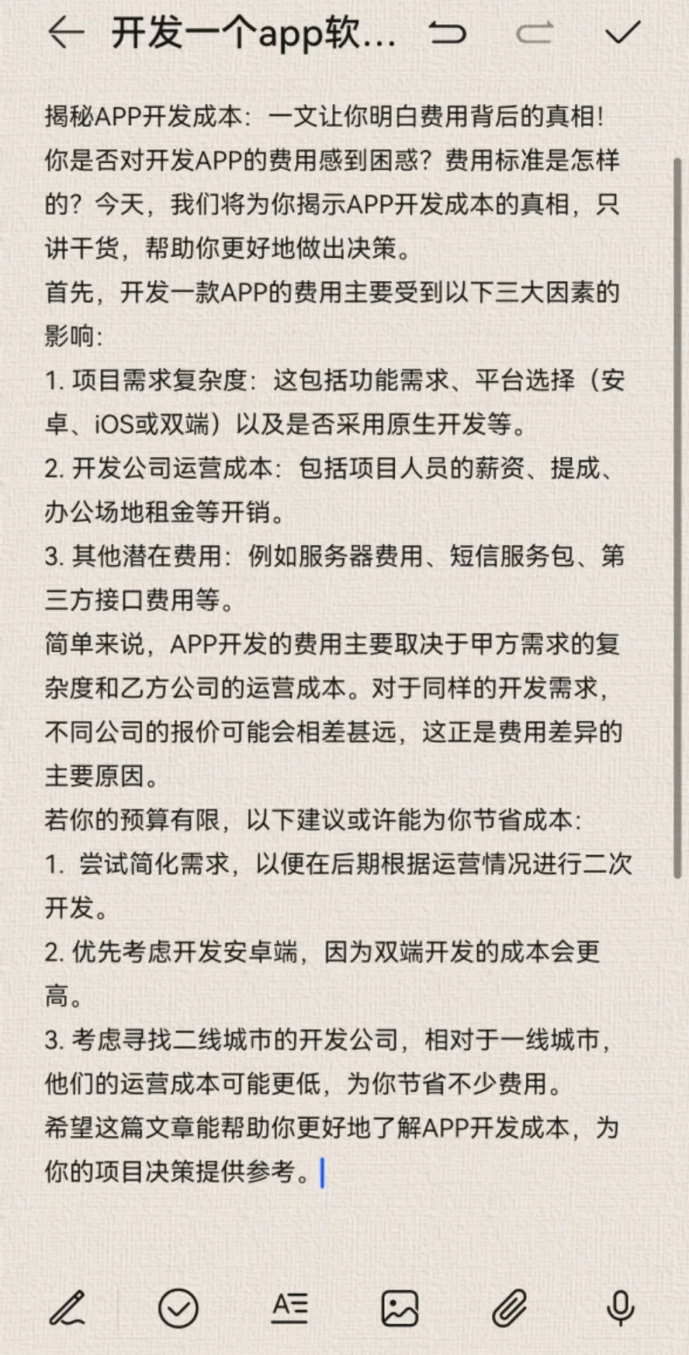 揭秘应用程序开发成本:一篇帮助你了解成本背后真相的文章! 你对开发应用程序的成本感到困惑吗成本标准是什么今天,我们将向您揭示应用程序开发成本的真相,只关注干货,帮助您做出更好的决策。 首先,开发应用程序的成本主要受以下三个因素的影响: 1.项目需求复杂度:包括功能需求、平台选择(安卓、iOS或双端)以及是否采用原生开发。 2.开发公司运营成本:包括项目人员工资、佣金、办公场地租金等费用。 3.其他潜在成本:如服务器费、短信服务包、第三方接口费等。 简单地说,应用程序开发的成本主要取决于甲方要求的复杂性和乙方公司的运营成本。对于相同的开发要求,不同公司的报价可能差异很大,这是成本差异的主要原因。 如果您的预算有限,以下建议可以帮助您节省成本: 1.尽量简化要求,以便以后根据操作条件进行二次开发。 2.应该优先开发安卓端,因为双端开发的成本会更高。 3.考虑在二线城市寻找开发公司,因为与一线城市相比,它们的运营成本可能更低,为你节省了很多费用。 我希望这篇文章能帮助你更好地了解应用程序开发的成本,并为你的项目决策提供参考。