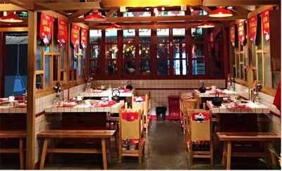 4.贤和庄卤味火锅。贤和庄卤味火锅店共分为上下两层。从外观上看,整个店铺的装修均以穿红色为主调又不失古风建筑的典雅。在火锅店招牌的右边有一个巨大的双开木门。从木门过去的左手边有一个长的阶梯。餐桌与餐桌之间几乎都是用木质的栏杆隔开,用餐的顾客就可以互不打扰,专心享受美食。