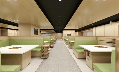 1.海底捞。错落的盒装造型让天花板在无形之中构建出围合感,规整却不规则,营造出统一的店面观感同时,空间的边界感亦被消散,使人员出入时可以穿梭自由,不受阻隔,增加了空间的趣味性,让林立在门外的客人可视店内,吸引客流。黄铜火锅元素的墙体,如沸腾气泡的顶灯;烟雾缭绕的雾气蒸腾,宛如翻滚汤底的玻璃瀑布,都彰显着鲜活涌动。视觉,景致,氛围,在火锅慢慢熬煮之中,始吃清淡,渐现浓香。