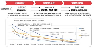 商家可继续通过新版薯条的投放和笔记内容的赛马测试,积累千赞爆文,形成品牌内容矩阵,增加曝光,加大投流。这个阶段商家需要加到预算投放力度,放大投放流量或转投信息流广告,实现高曝光、强记忆、强交互的投放效果,实现品牌的二次种草升级。