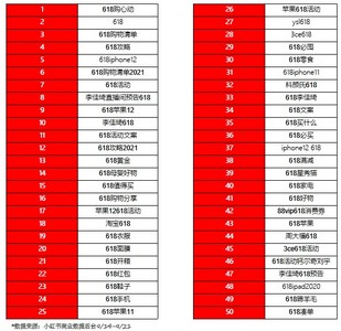 通过搜索关键词分析可以看出,小红书用户关于618的搜索主要围绕商品种草推荐,包括618相关的购物清单、购买攻略、好物分享。以下为2021小红书618相关热搜词TOP50: