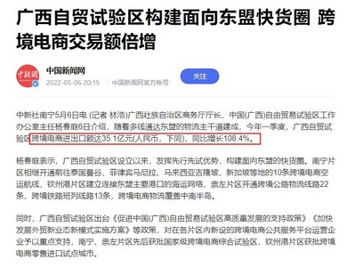 广西自贸试验区2022年一季度跨境电商进出口额超30亿元