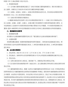 公告称,公司于2022年4月28日召开第七届董事会第十七次会议,决定于2022年5月20日14:30以现场与网络投票相结合的方式召开公司2021年年度股东大会。