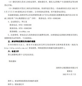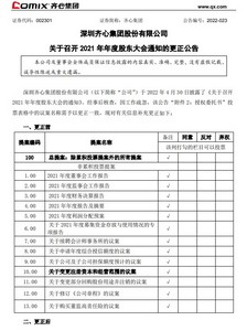 与此同时,齐心集团发布公告称,公司于2022年4月30日披露了《关于召开2021年年度股东大会的通知》。经事后核查,因工作疏忽,该公告“附件2:授权委托书”投票表格中的议案名称需予以更正一致。