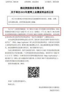 公告称,为了让广大投资者能够进一步了解公司2021年年度报告及经营情况,公司定于2022年5月13日(星期五)下午15:00-17:00举行2021年度网上业绩说明会。本次说明会系深圳证券交易所系列业绩说明会“美好生活新篇章”主题特定活动。