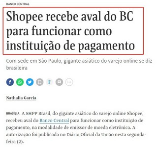 值得一提的是,据外媒Folha报道,东南亚电商Shopee旗下的SHPP Brasil公司已经获得中央银行批准,将以支付机构的身份运营,发行电子货币。该项授权于周一(5月2日)在联邦官方公报上公布。