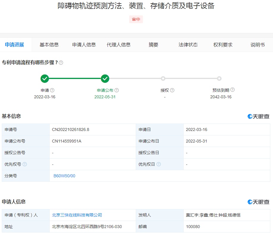 6月1日消息,天眼查资料显示,美团关联公司北京三快在线科技有限公司5月31日公开一项“障碍物轨迹预测方法、装置、存储介质及电子设备”专利,申请公布号为CN114559951A,申请日期为2022年3月16日。