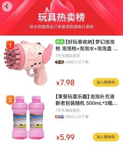 除了购买怀旧零食,不少“95后”还会下单购买怀旧玩具。泡泡机、泡泡胶等玩具同比去年增长迅猛超过5倍。