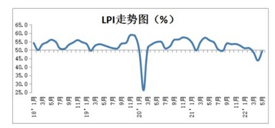 中物联 2022年5月份中国物流业景气指数为49.3%