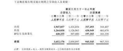 其中,受益于对优质内容的持续加注和精准把控,电影和剧集内容收入同比大幅增加,使内容分部于报告期内取得收入约人民币19.48亿元,同比增长37%。