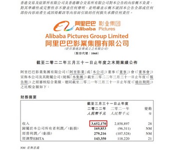 阿里影业2022财年营收36.52亿元 同比增长28%