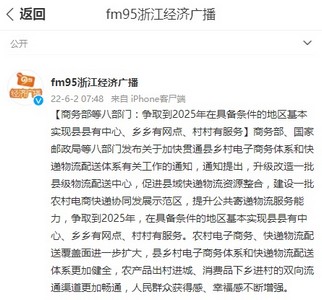 此外,商务部、国家邮政局等八部门近日发布关于加快贯通县乡村电子商务体系和快递物流配送体系有关工作的通知,通知提出,升级改造一批县级物流配送中心,促进县域快递物流资源整合,建设一批农村电商快递协同发展示范区,提升公共寄递物流服务能力,争取到2025年,在具备条件的地区基本实现县县有中心、乡乡有网点、村村有服务。